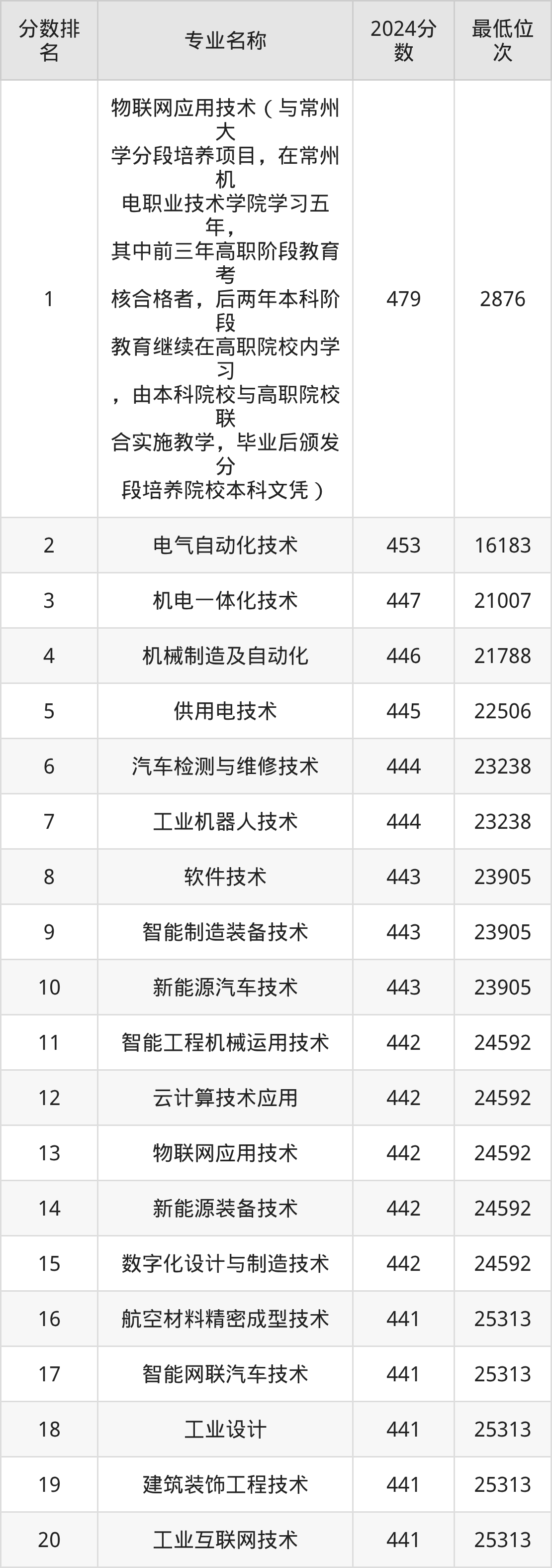 三、常州机电职业技术学院各专业录取分数线及位次