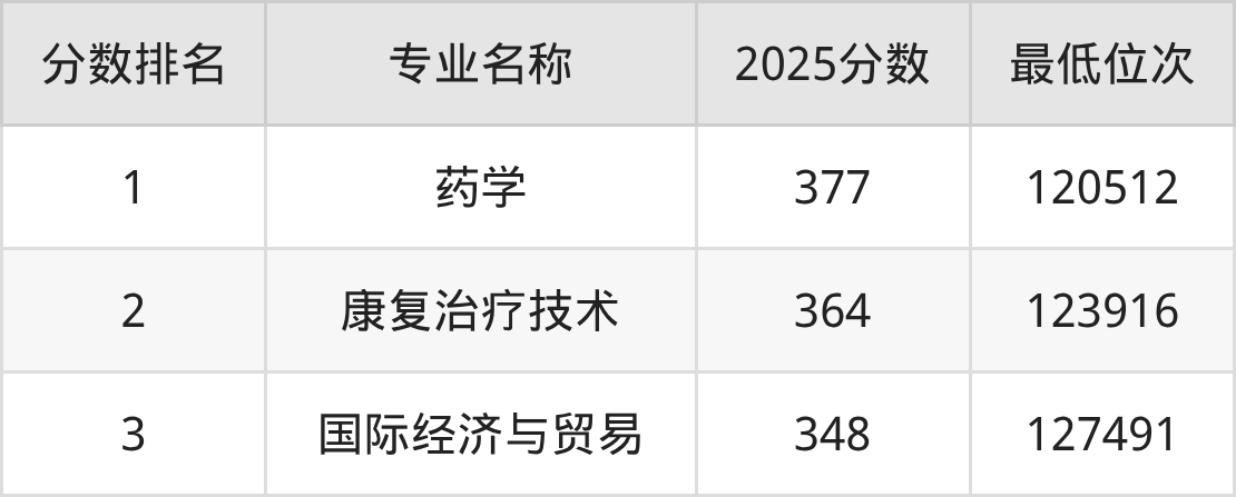 西双版纳职业技术学院2025年在重庆高考物理类,收分最高的王牌专业是药学,考生至少需要377分、120512位才能被录取。