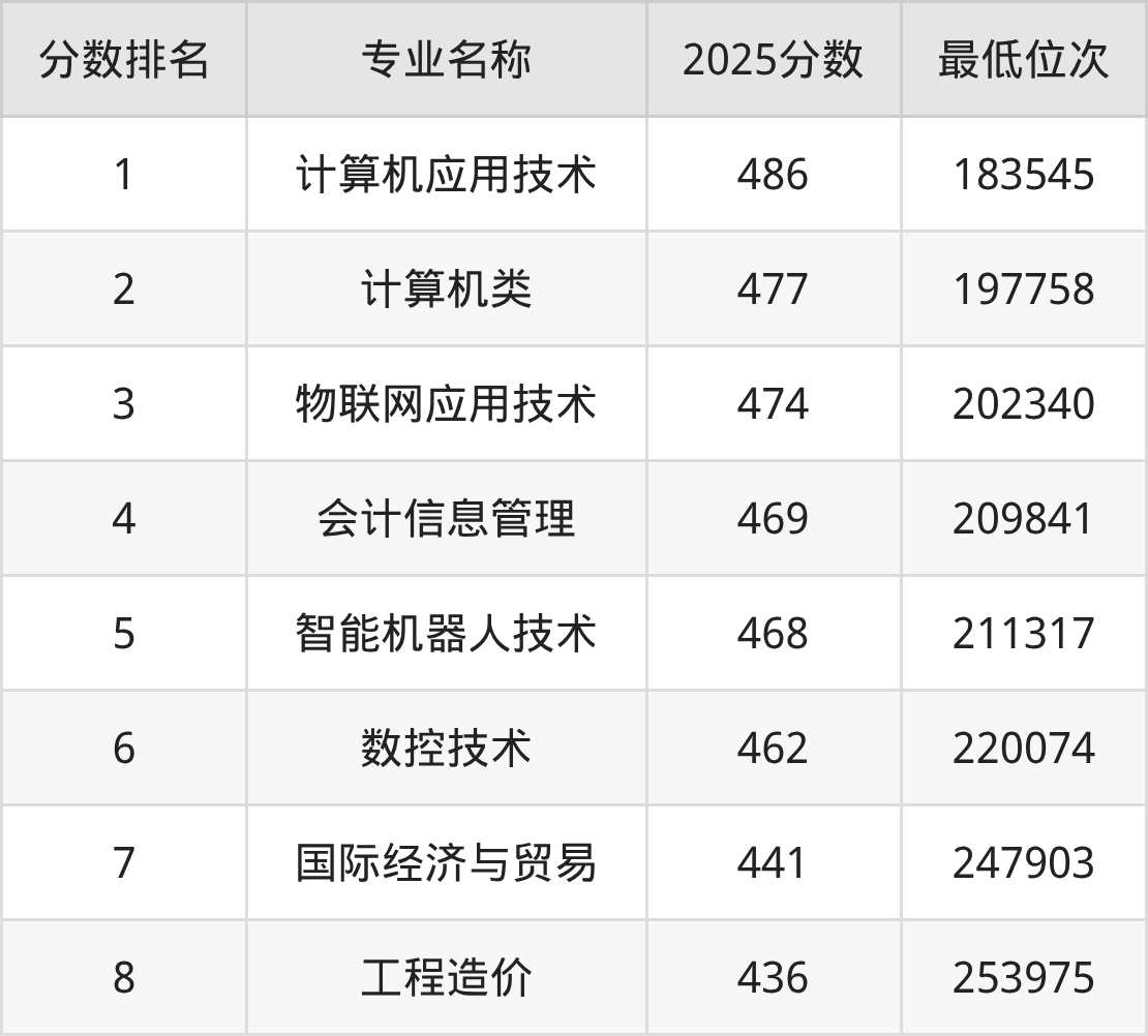从河北物理类考生报考的角度看,广东科学技术职业学院最热门的王牌专业计算机应用技术,2025年录取分是486分、位次是183545位,比最低分专业高了50分。