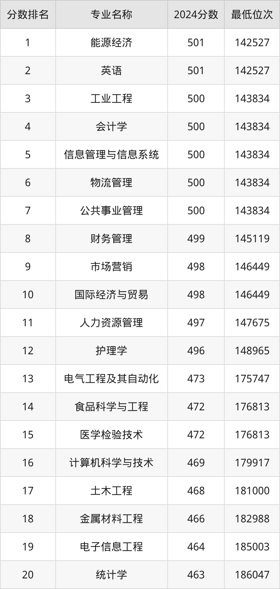 从江苏物理类考生报考的角度看,江苏大学京江学院最热门的王牌专业能源经济等专业,2025年录取分是501分、位次是142527位,比最低分专业高了39分。