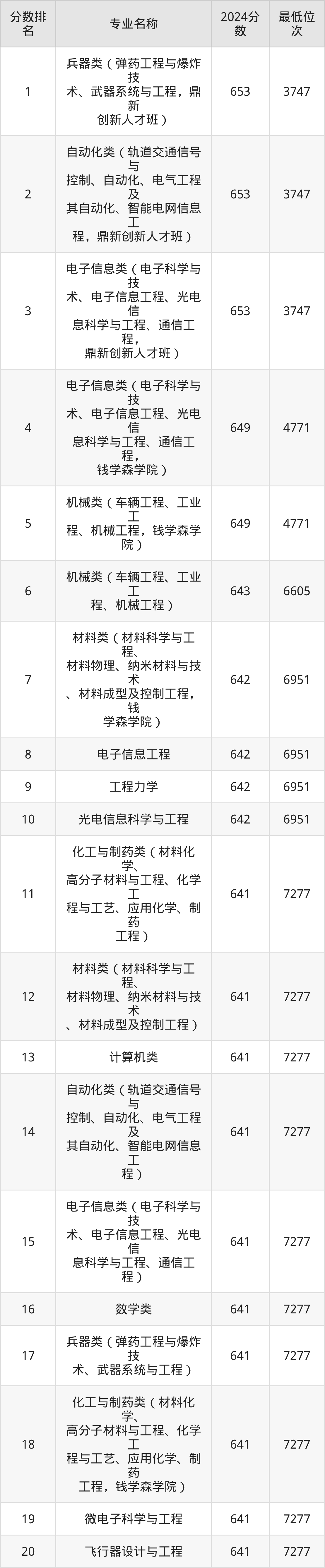 三、南京理工大学各专业录取分数线及位次