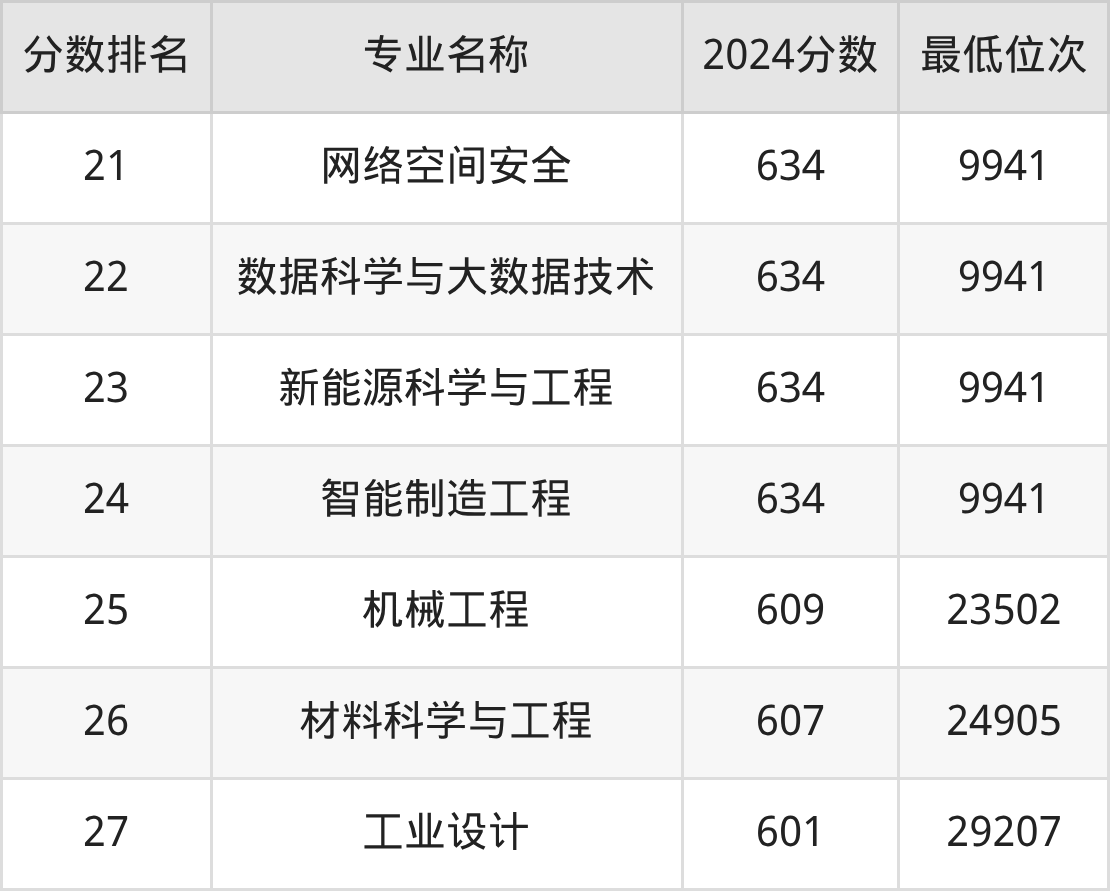 下方表格展示的是南京理工大学其余上榜软科2025年专业排名榜单的所有数据。大家可以看看自己心仪的专业,在南京理工大学各专业中处于什么水平。如果你的心仪专业是排名靠前的材料物理、通信工程等专业,则建议大家重点考虑南京理工大学。如果你的心仪专业是南京理工大学排名靠后的金融学、法学专业,则建议大家在能上的大学中继续看看,有没有比南京理工大学专业实力更强的院校!