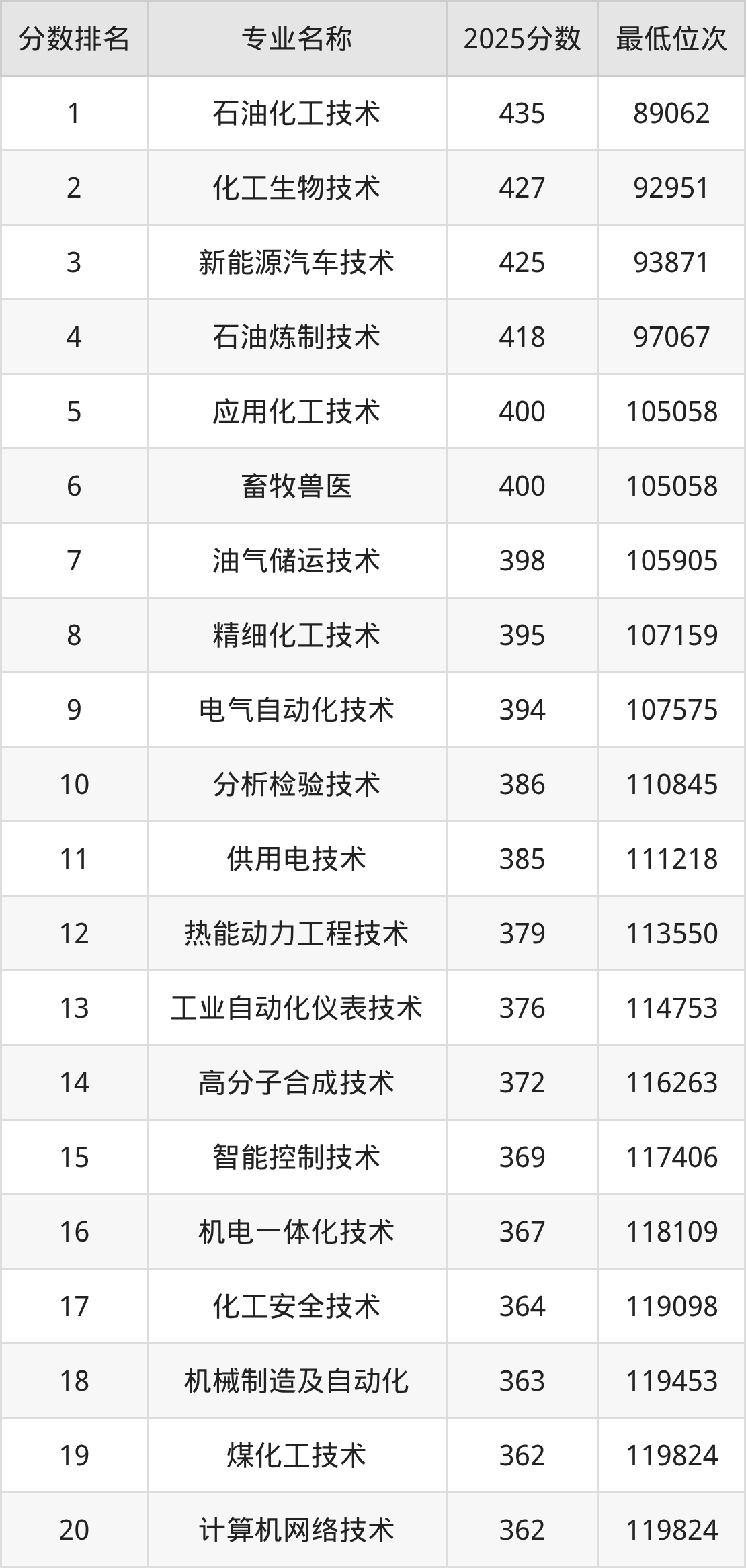 辽宁石化职业技术学院2025年在辽宁高考物理类,收分最高的王牌专业是石油化工技术,考生至少需要435分、89062位才能被录取。