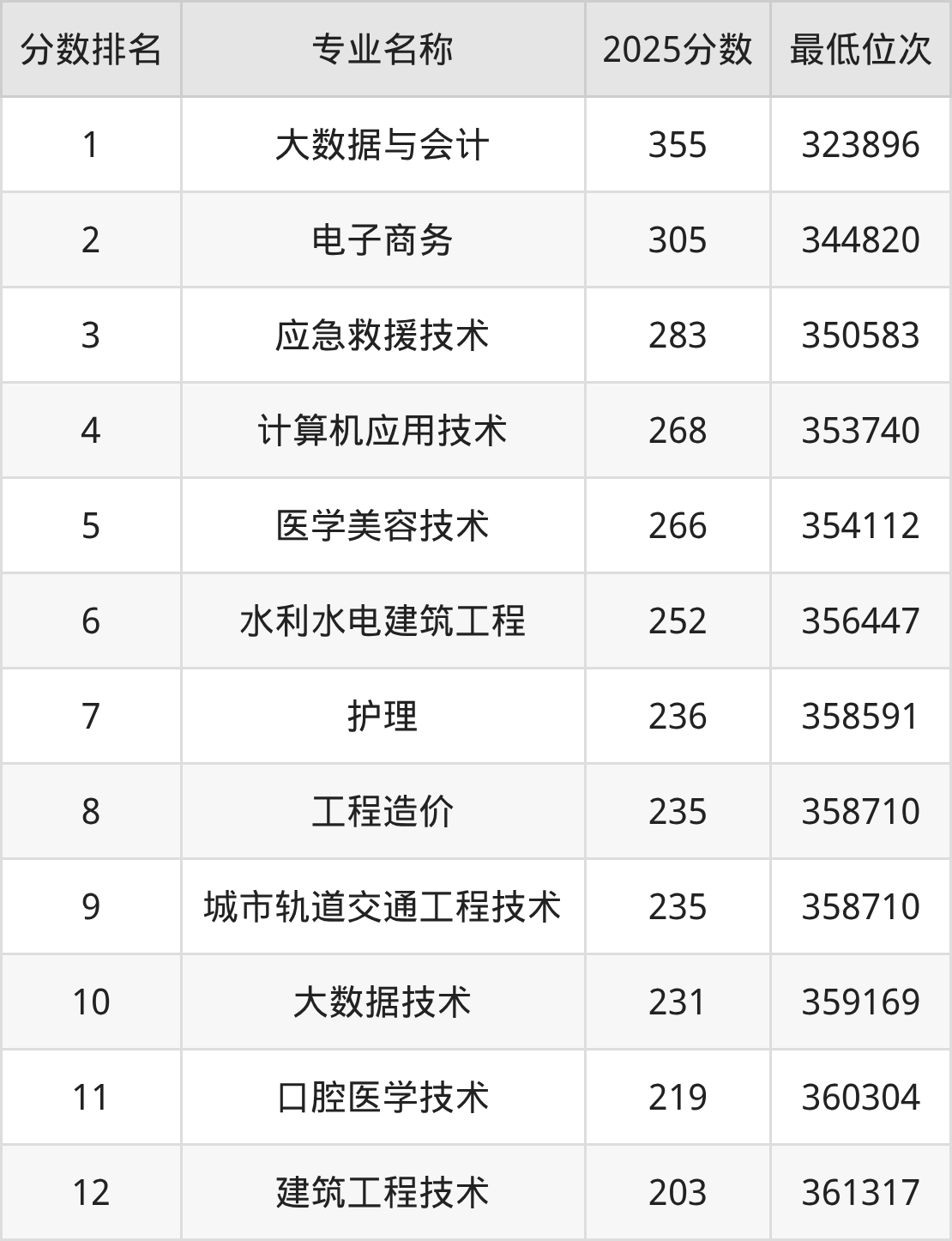 从河北物理类考生报考的角度看,云南城市建设职业学院最热门的王牌专业大数据与会计,2025年录取分是355分、位次是323896位,比最低分专业高了152分。