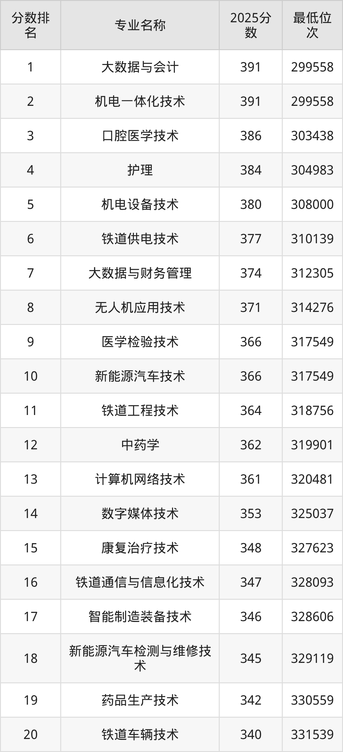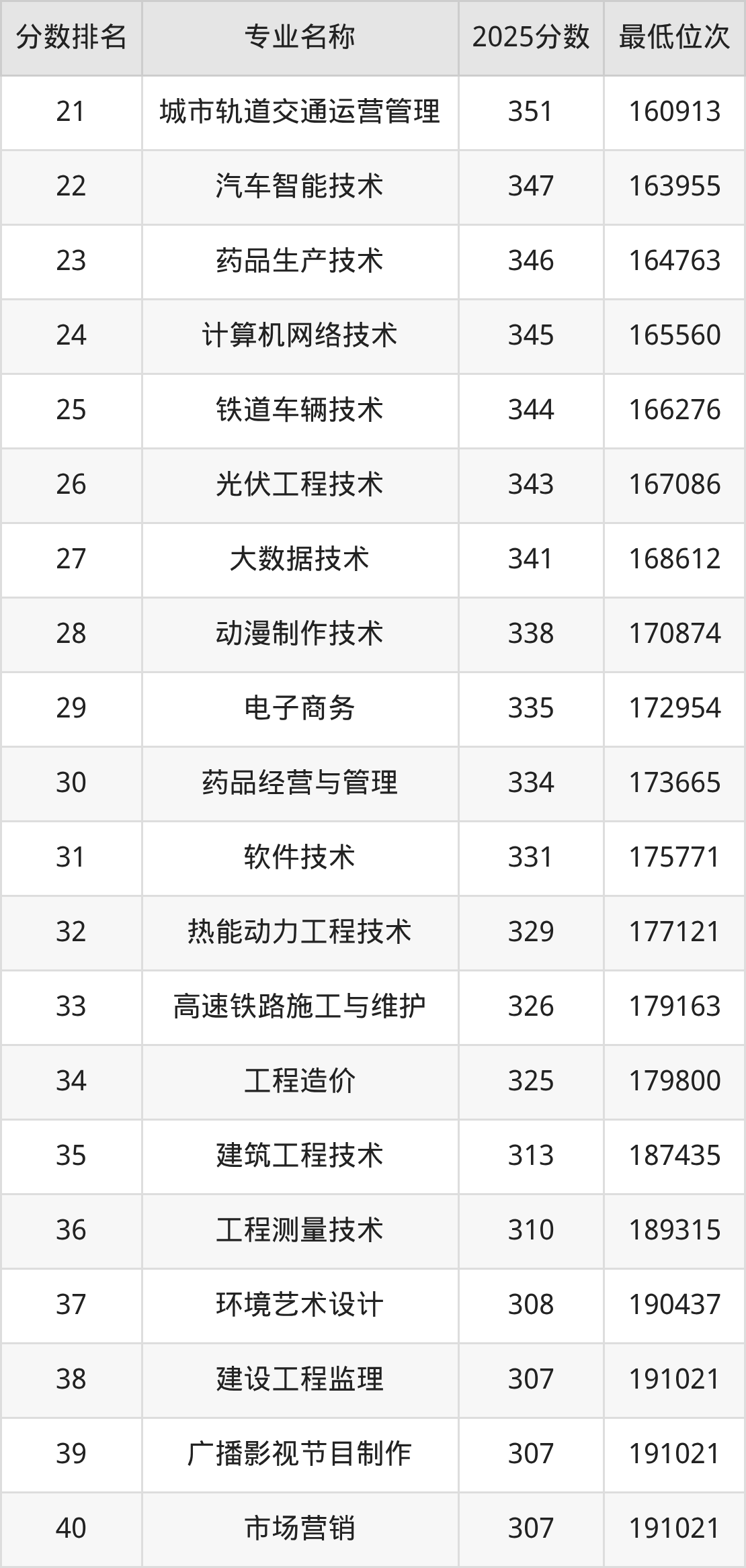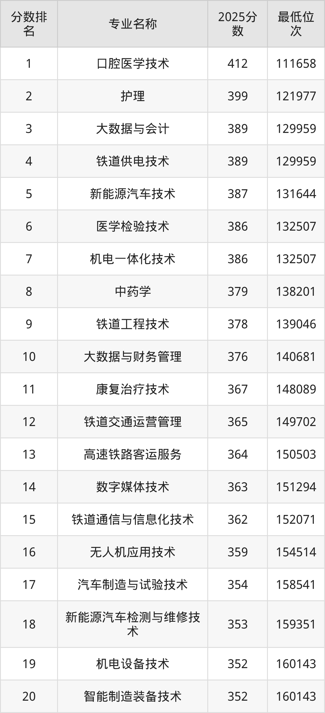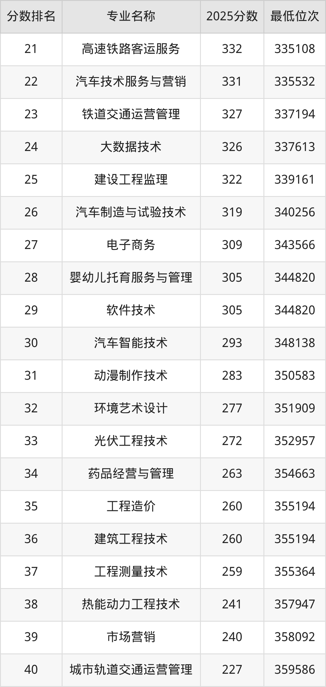 二、石家庄科技职业学院各专业录取分数线及位次