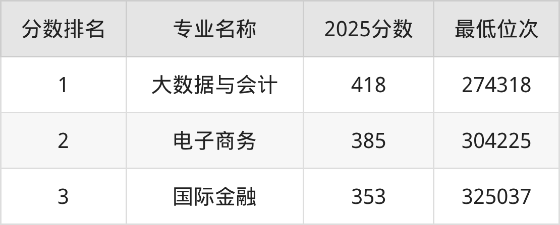 从河北物理类考生报考的角度看,广西国际商务职业技术学院最热门的王牌专业大数据与会计,2025年录取分是418分、位次是274318位,比最低分专业高了65分。