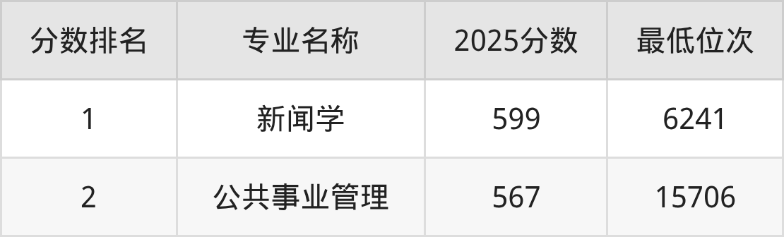 下方表格展示的是首都体育学院其余上榜软科2025年专业排名榜单的所有数据。大家可以看看自己心仪的专业,在首都体育学院各专业中处于什么水平。如果你的心仪专业是排名靠前的舞蹈表演、新闻学等专业,则建议大家重点考虑首都体育学院。如果你的心仪专业是首都体育学院排名靠后的公共事业管理专业,则建议大家在能上的大学中继续看看,有没有比首都体育学院专业实力更强的院校!