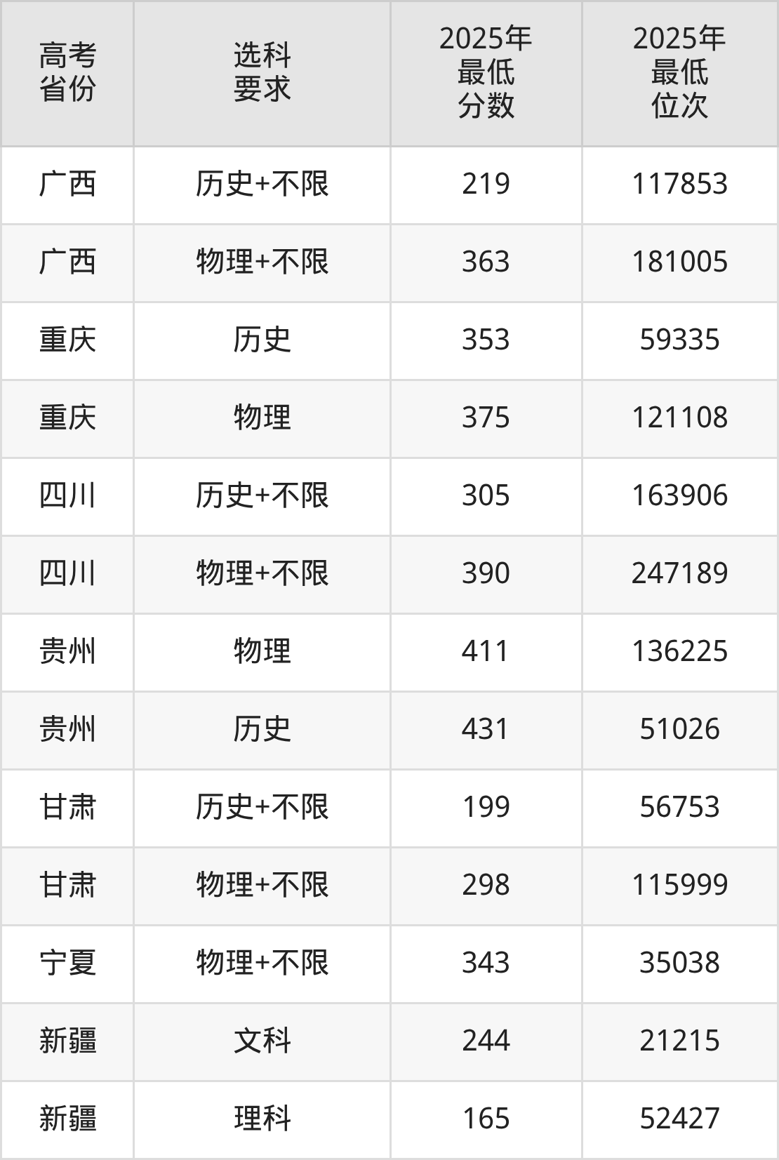 在2025年甘肃高考物理类招生时,211收分最低的是四川大学904专业组(国防基地预科),最低分是408分、位次是76099位。再看酒泉职业技术大学,2025年在甘肃物理类的最低录取分数线是298分,最低位次是115999位。