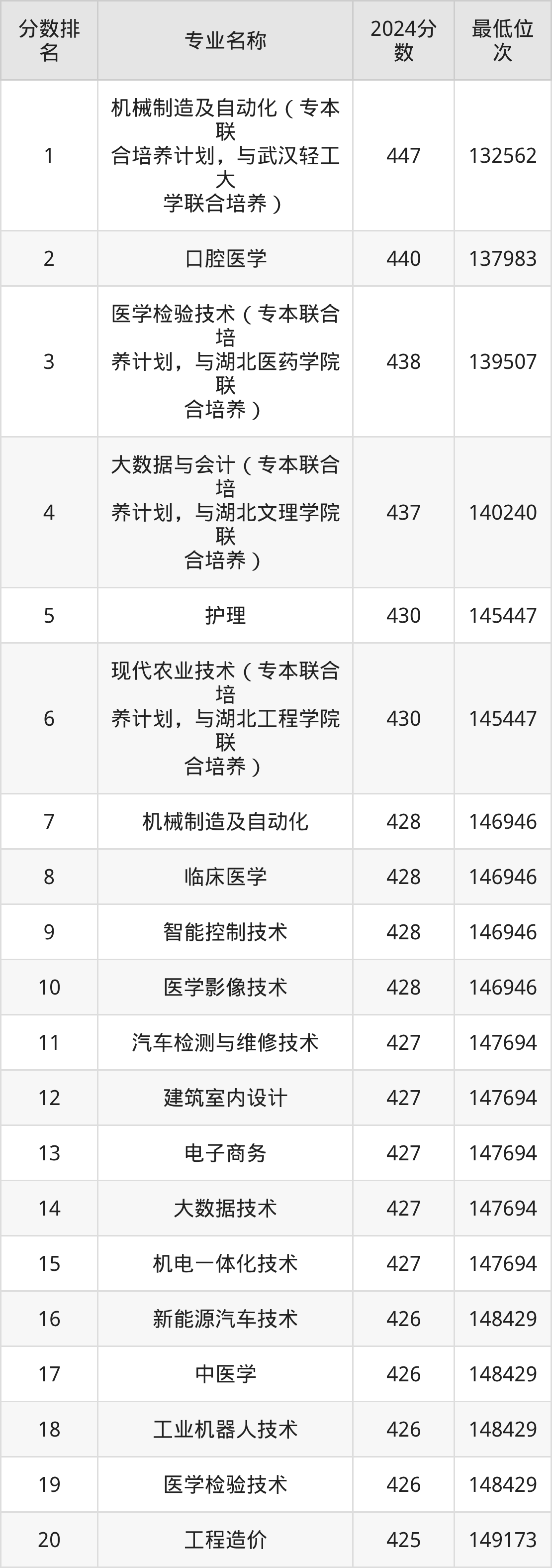 从湖北物理类考生报考的角度看,襄阳职业技术学院最热门的王牌专业机械制造及自动化,2025年录取分是447分、位次是132562位,比最低分专业高了32分。