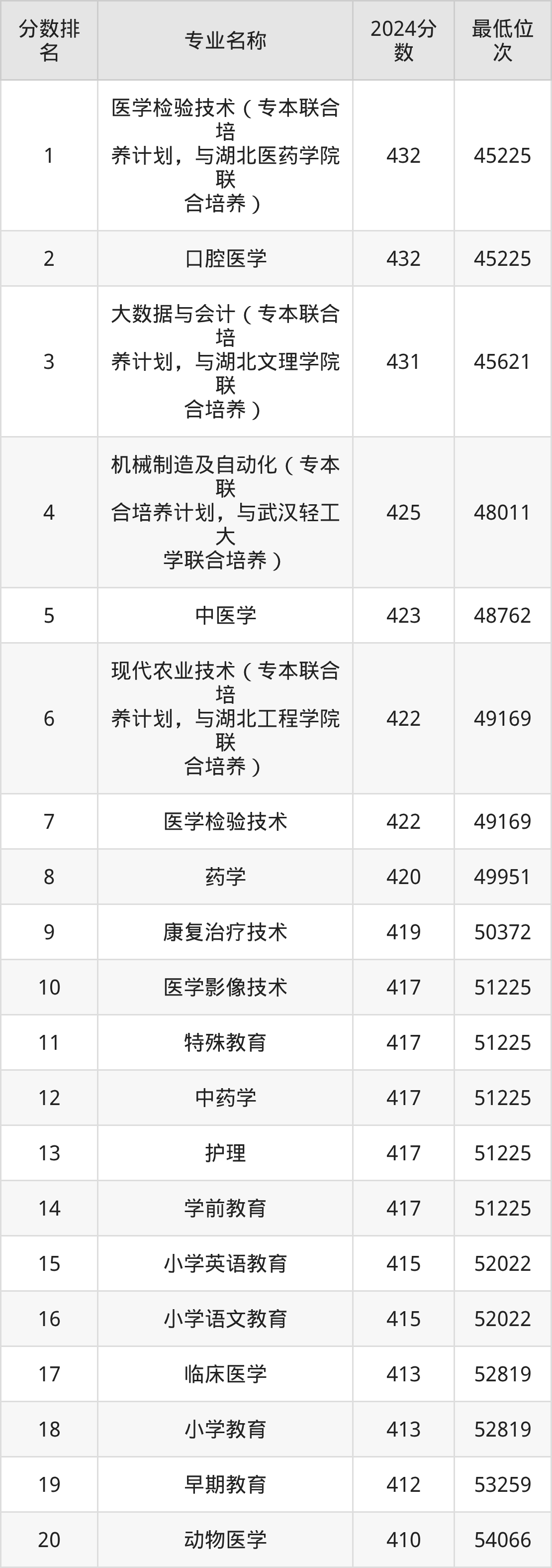 襄阳职业技术学院2025年在湖北高考历史类,收分最高的王牌专业是医学检验技术等专业,考生至少需要432分、45225位才能被录取。