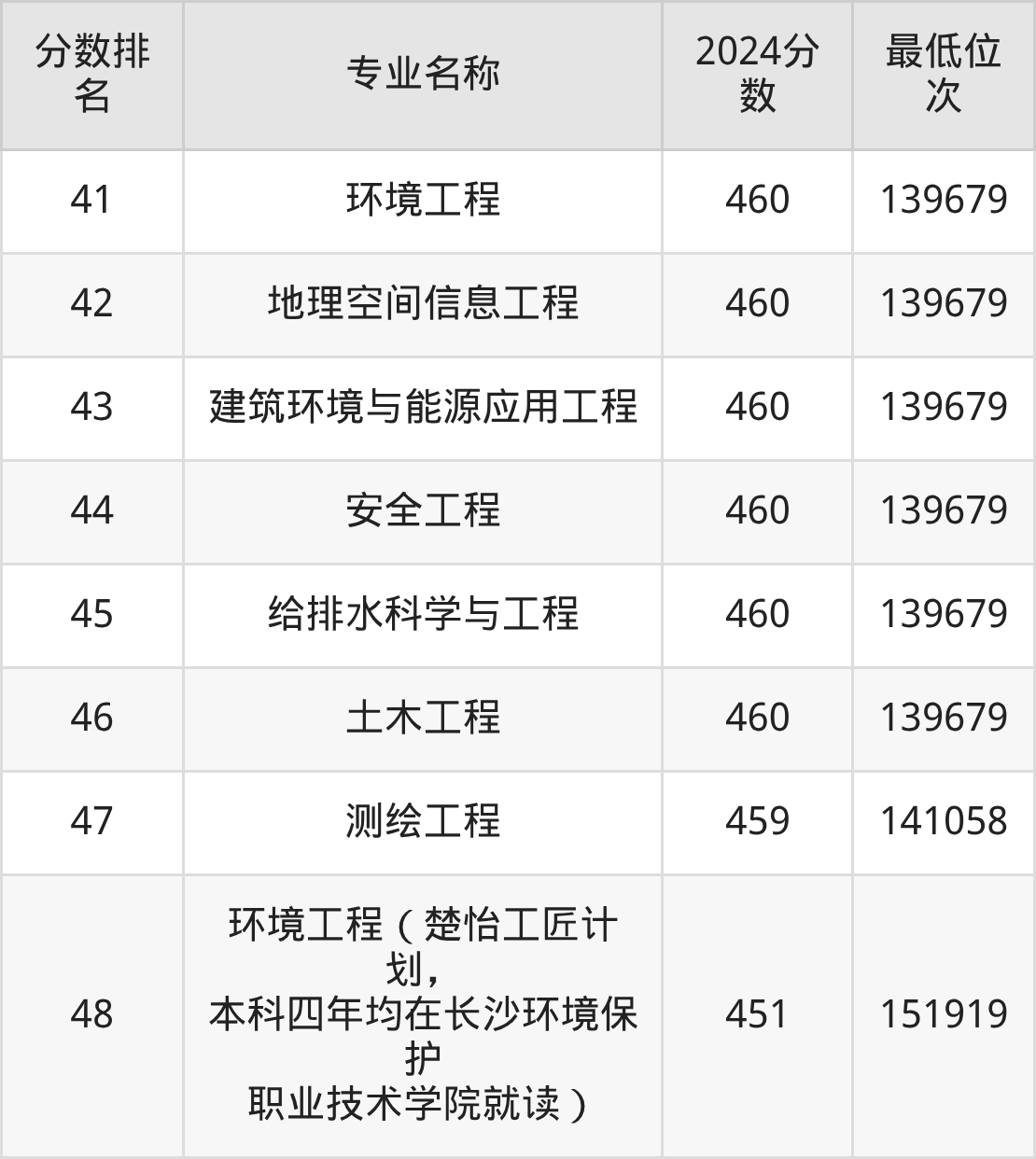 下方表格展示的是湖南城市学院其余上榜软科2025年专业排名榜单的所有数据。大家可以看看自己心仪的专业,在湖南城市学院各专业中处于什么水平。如果你的心仪专业是排名靠前的工程造价、城乡规划等专业,则建议大家重点考虑湖南城市学院。如果你的心仪专业是湖南城市学院排名靠后的英语、计算机科学与技术专业,则建议大家在能上的大学中继续看看,有没有比湖南城市学院专业实力更强的院校!