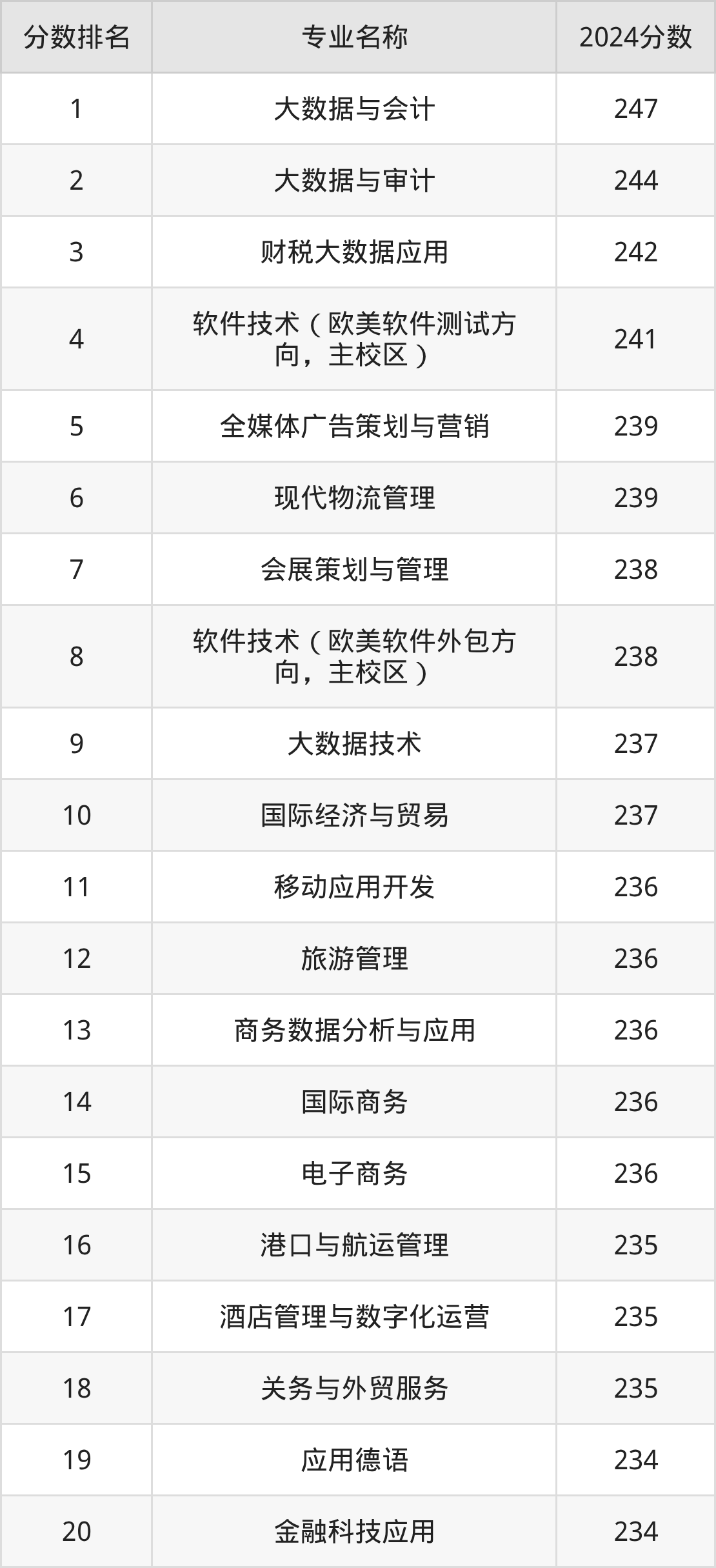 三、天津商务职业学院各专业录取分数线及位次