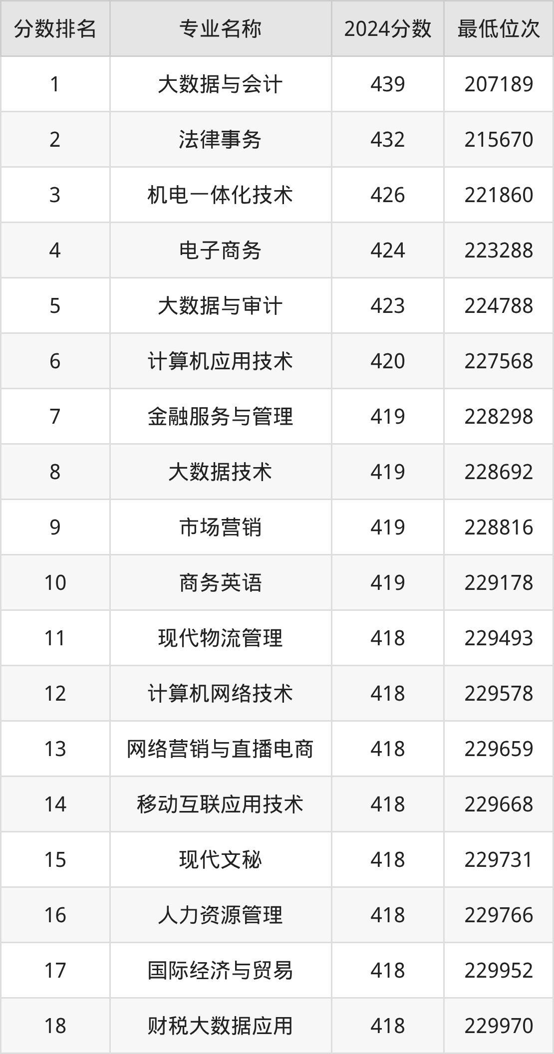 三、安徽商贸职业技术学院各专业录取分数线及位次