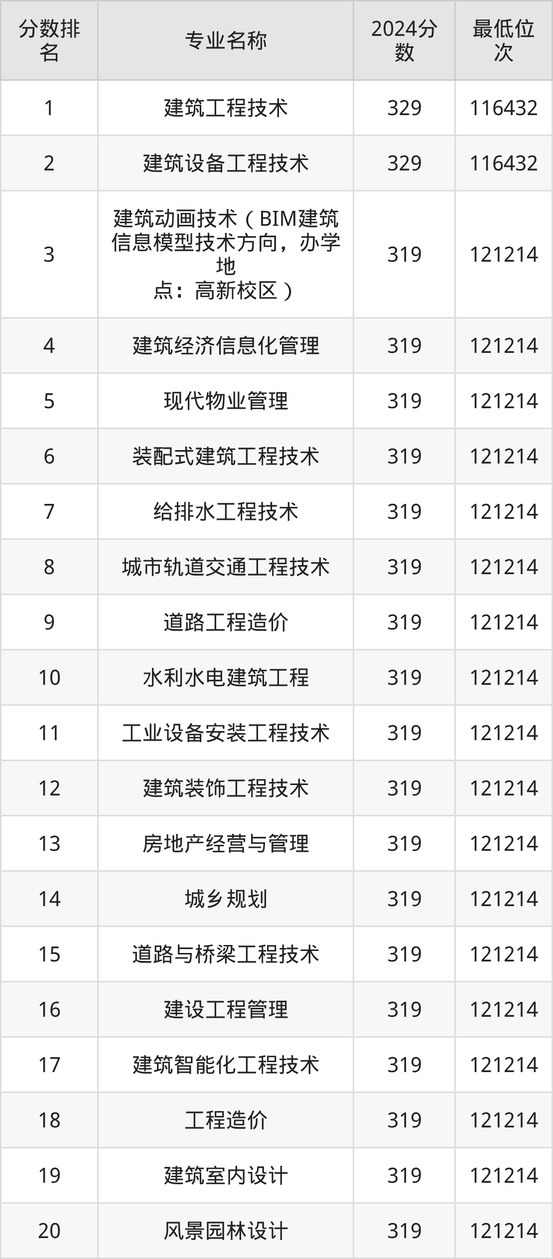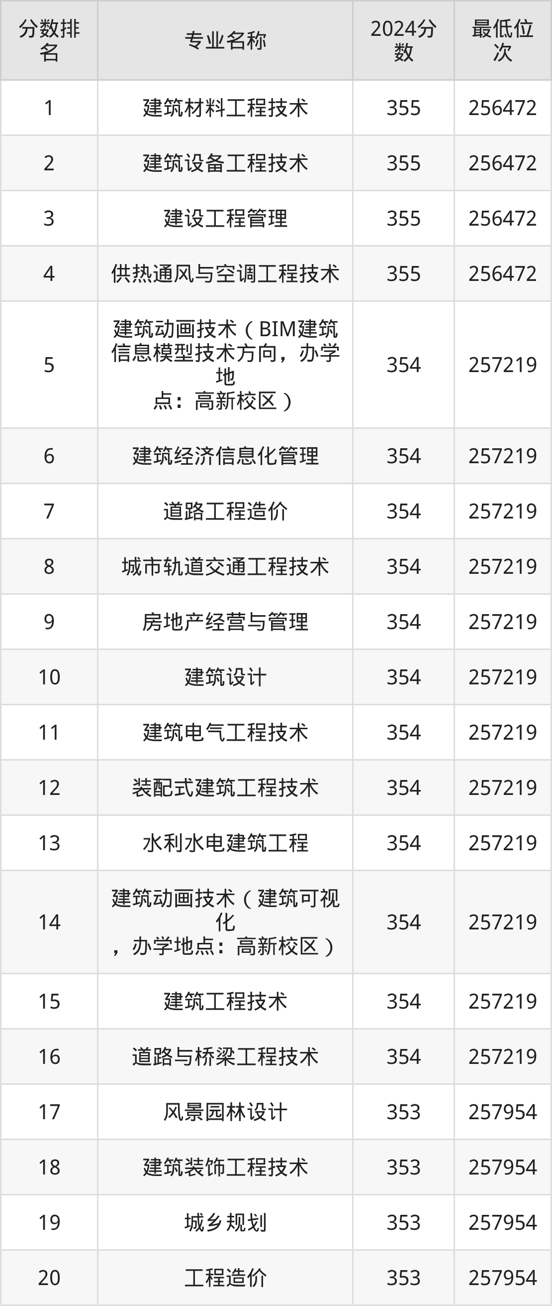 三、湖南城建职业技术学院各专业录取分数线及位次