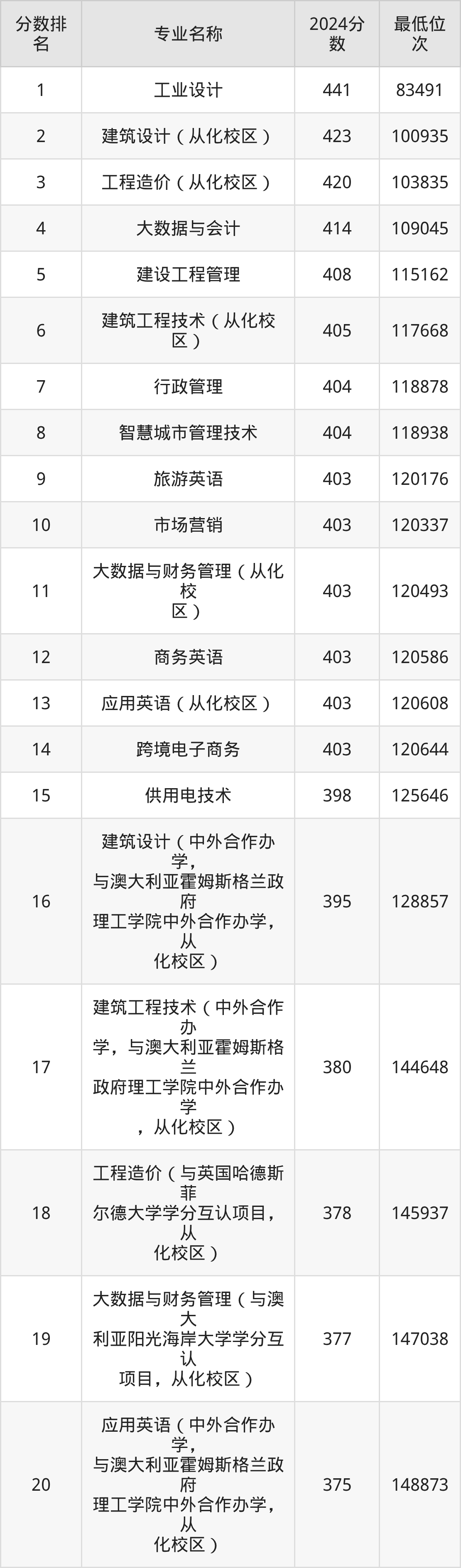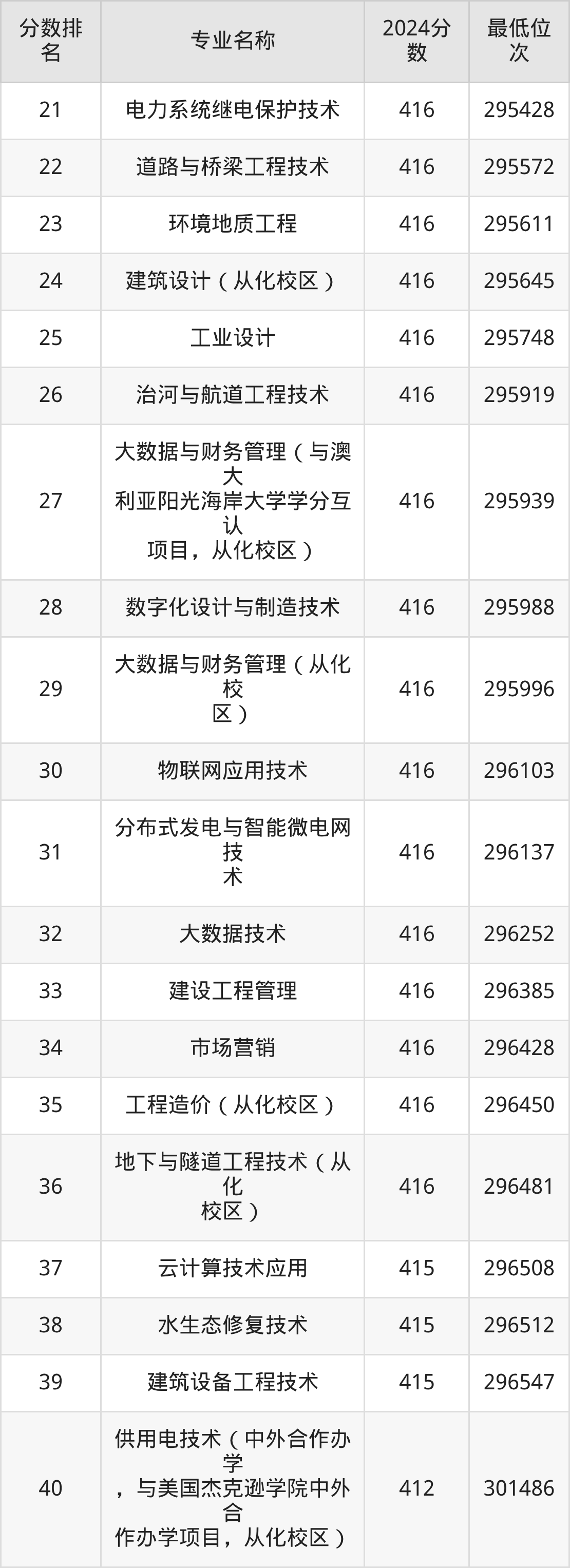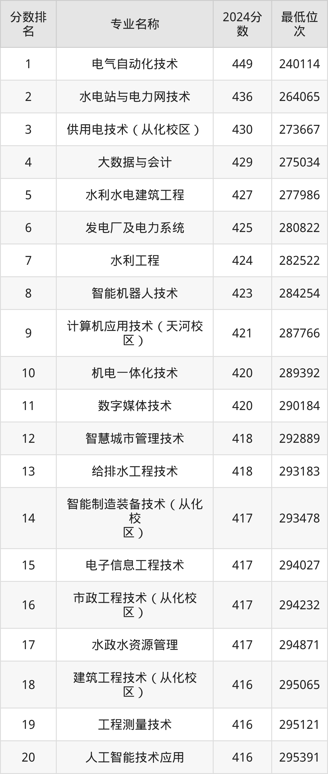 三、广东水利电力职业技术学院各专业录取分数线及位次