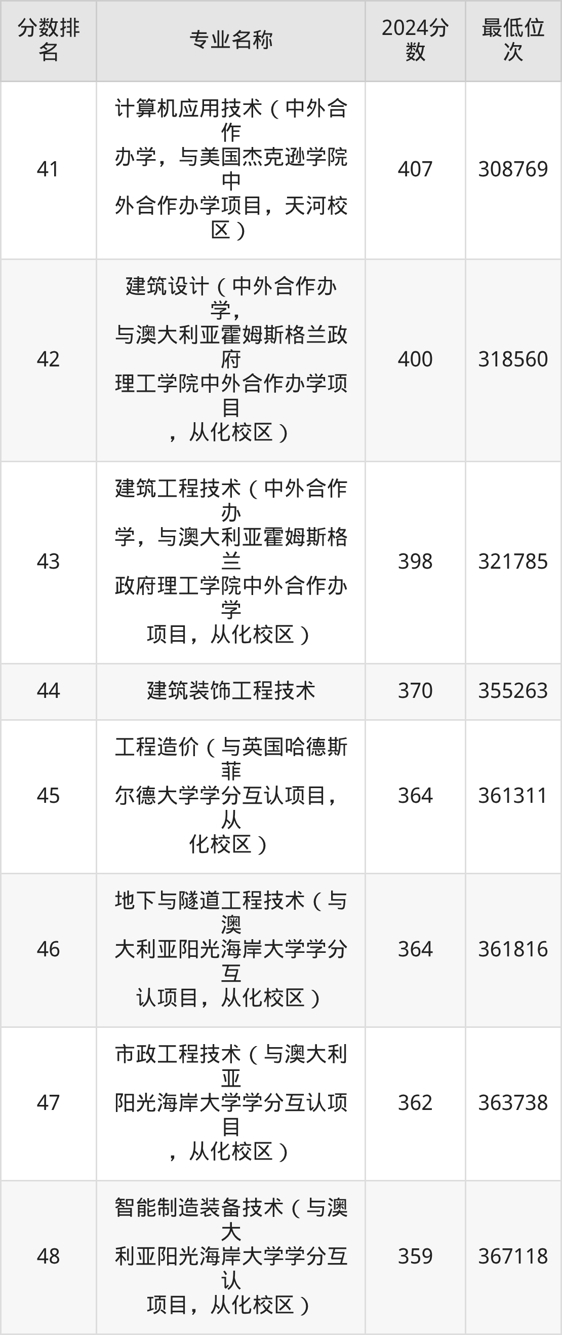 下图是广东水利电力职业技术学院物理类各专业录取分数线一览表(48个专业):