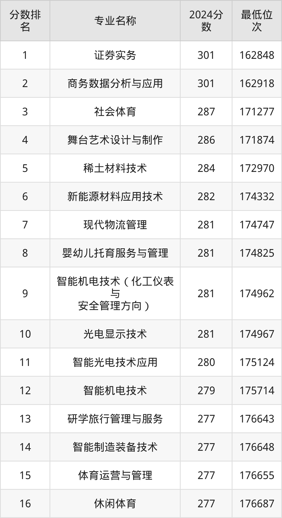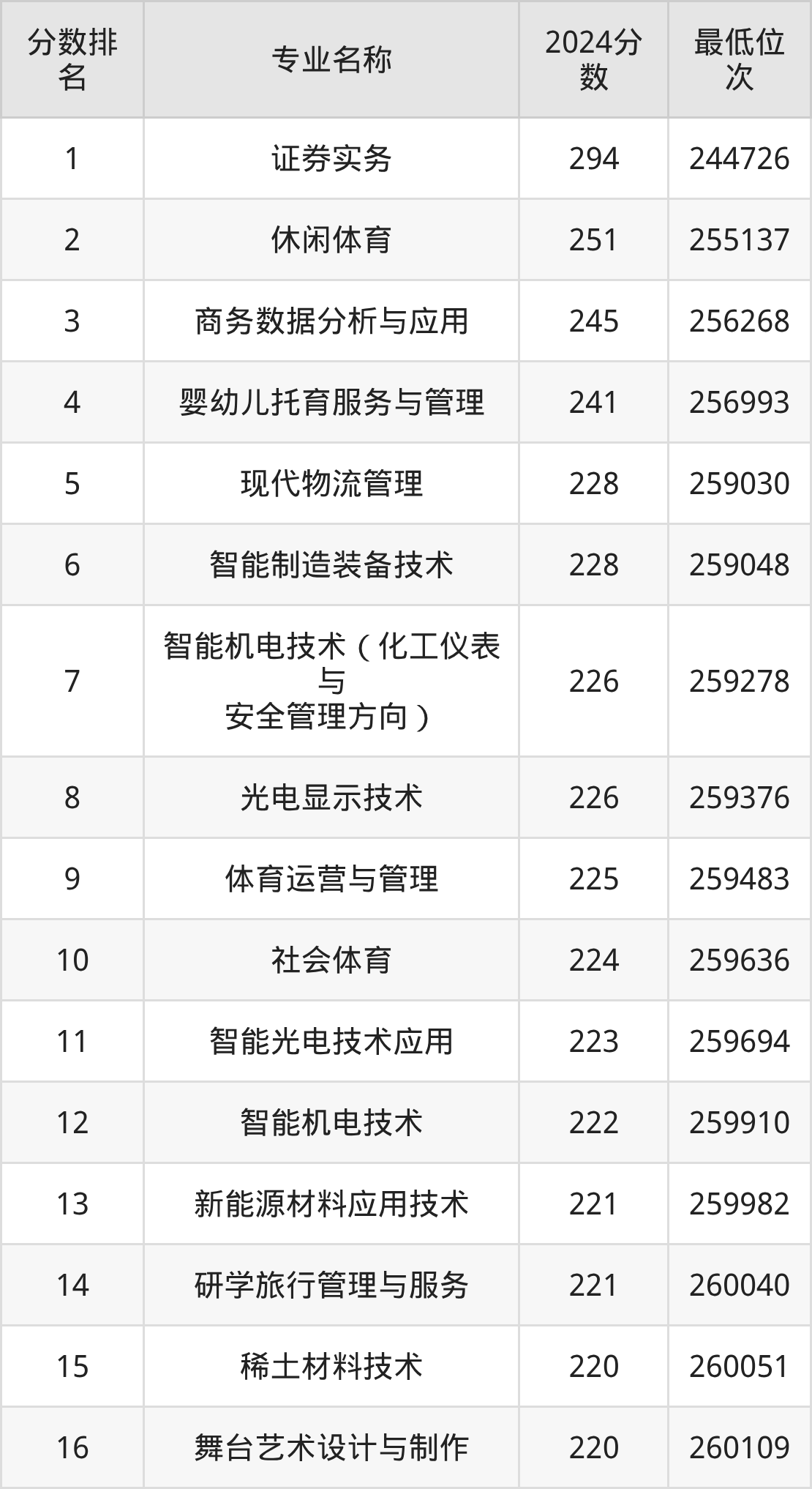 下图是和君职业学院物理类各专业录取分数线一览表(16个专业):