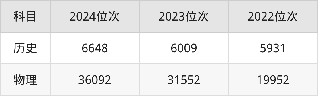 2、历史类:3个专业,最低分是592分、位次是7950位