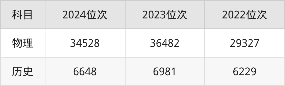 2、历史类:7个专业,最低分是601分、位次是5759位
