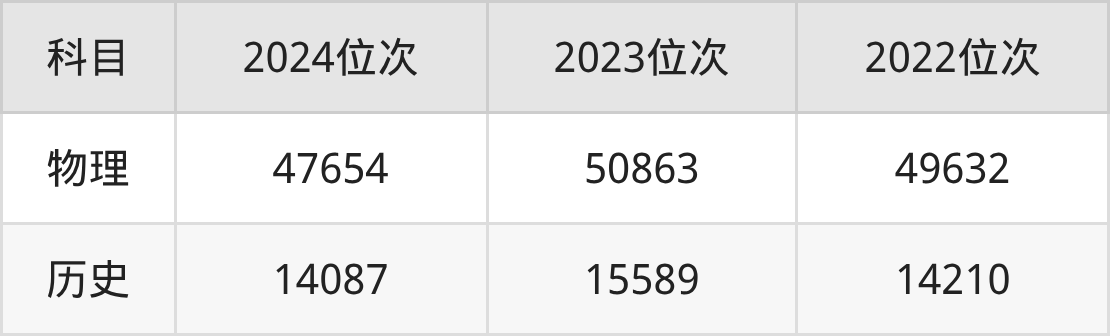 2、历史类:2个专业组,最低分是543分、位次是26982位