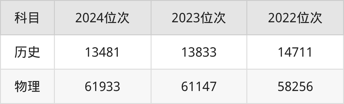 2、历史类:3个专业,最低分是514分、位次是14376位
