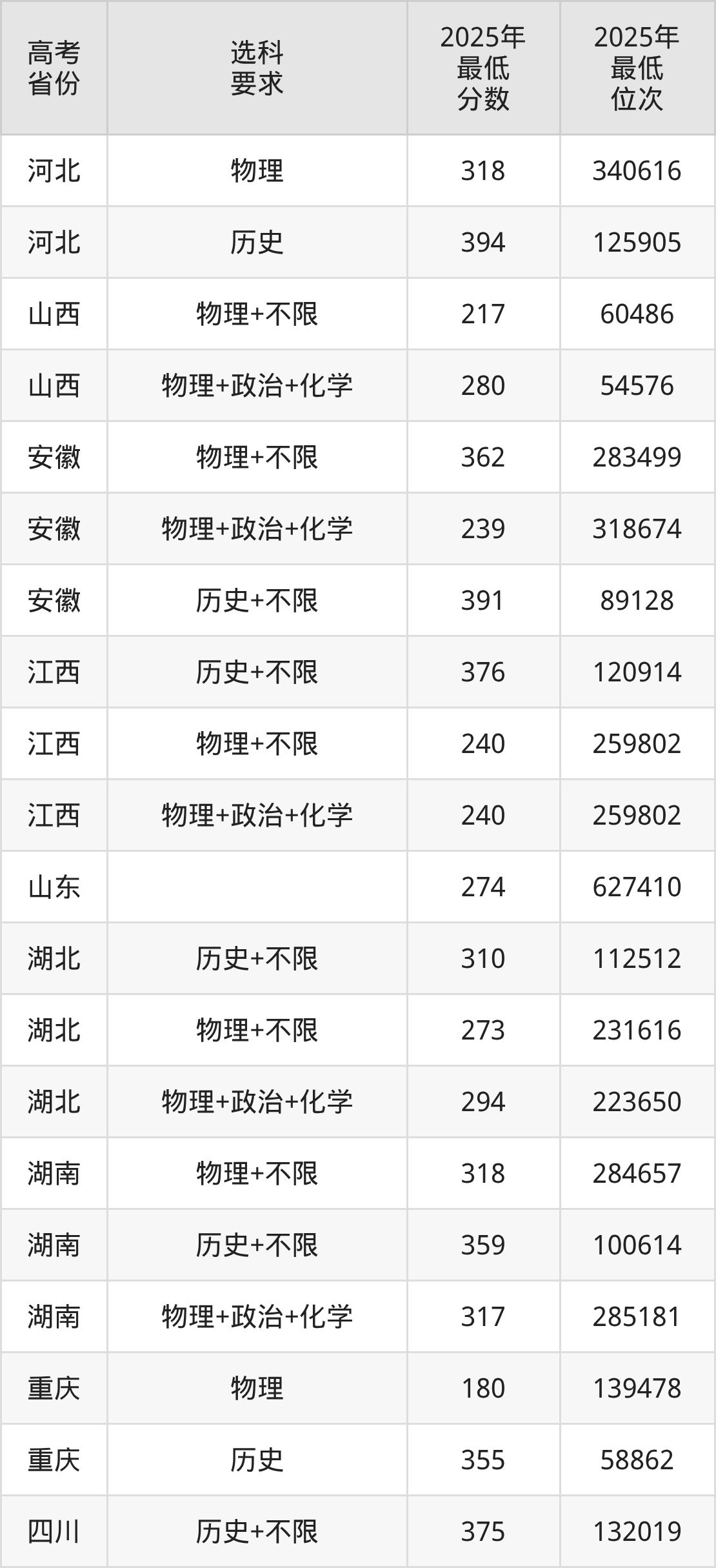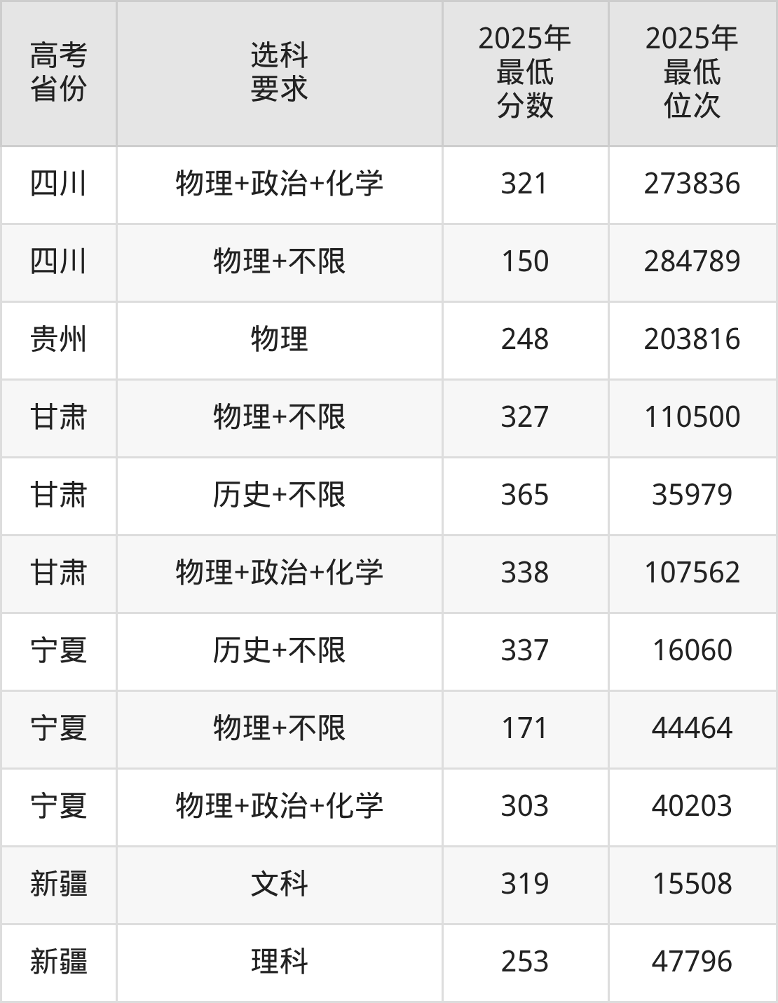 在2025年新疆高考理科招生时,211收分最低的是四川农业大学,最低分是421分、位次是18415位。再看乌鲁木齐职业大学,2025年在新疆理科的最低录取分数线是253分,最低位次是47796位。