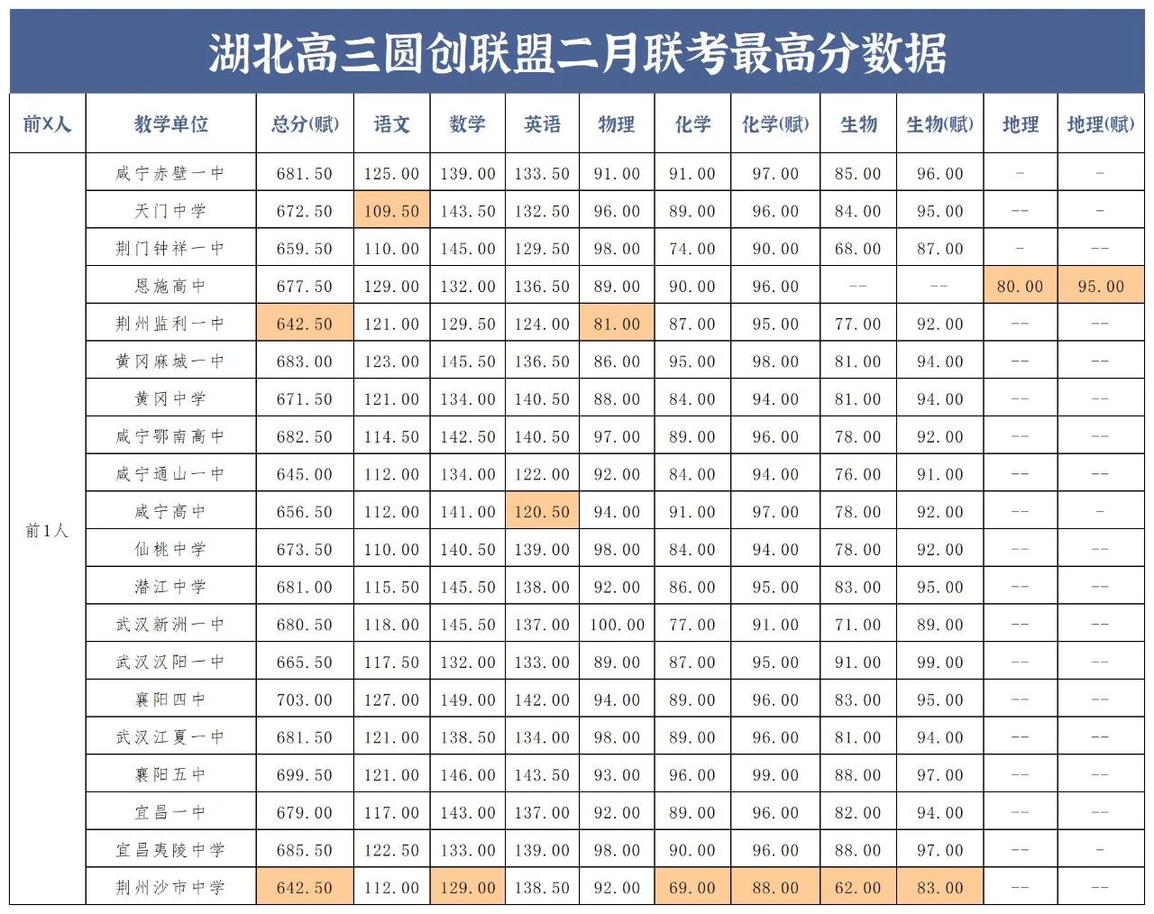 历史类总分680分以上表现突出,如咸宁赤壁一中最高681.5分(语文125、数学139、英语133.5)。