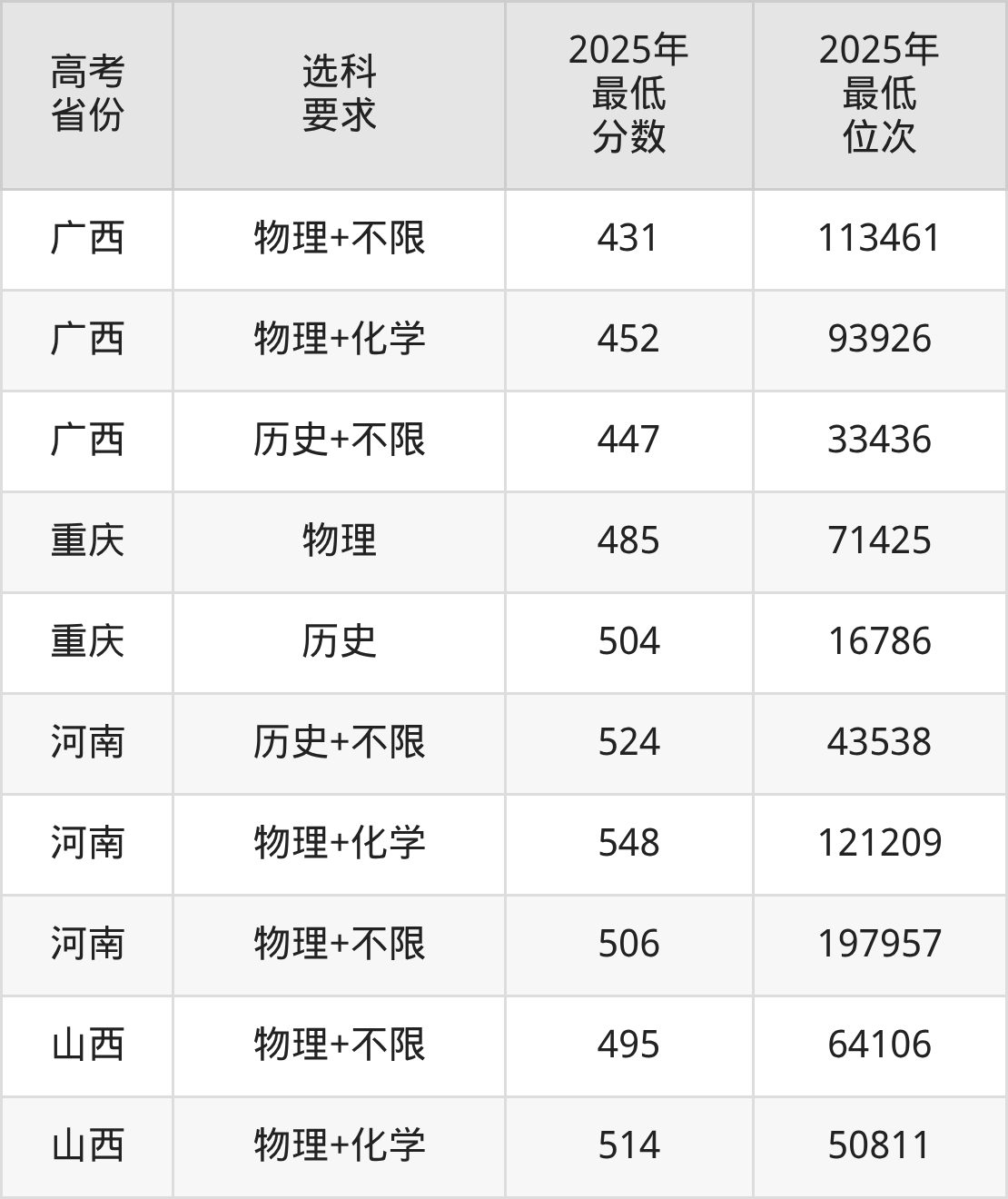 在2025年江西高考物理类招生时,211收分最低的是延边大学第503组,最低分是515分、位次是66039位。再看江西飞行学院,2025年在江西物理类的最低录取分数线是478分,最低位次是111801位。