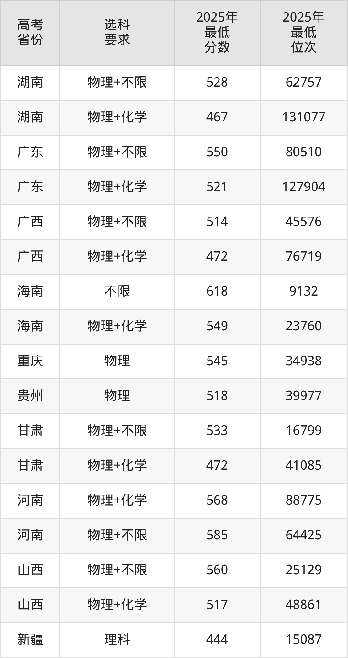 在2025年新疆高考理科招生时,211收分最低的是四川农业大学,最低分是421分、位次是18415位。再看陕西中医药大学,2025年在新疆理科的最低录取分数线是444分,最低位次是15087位。