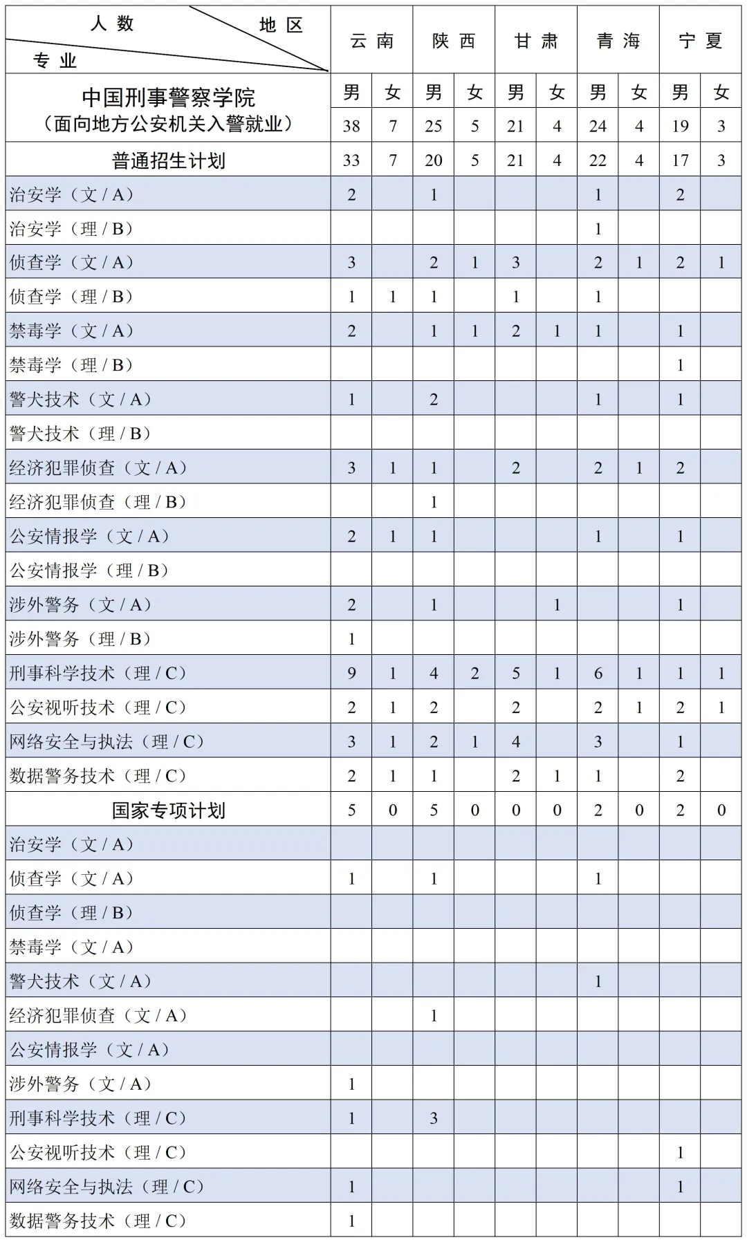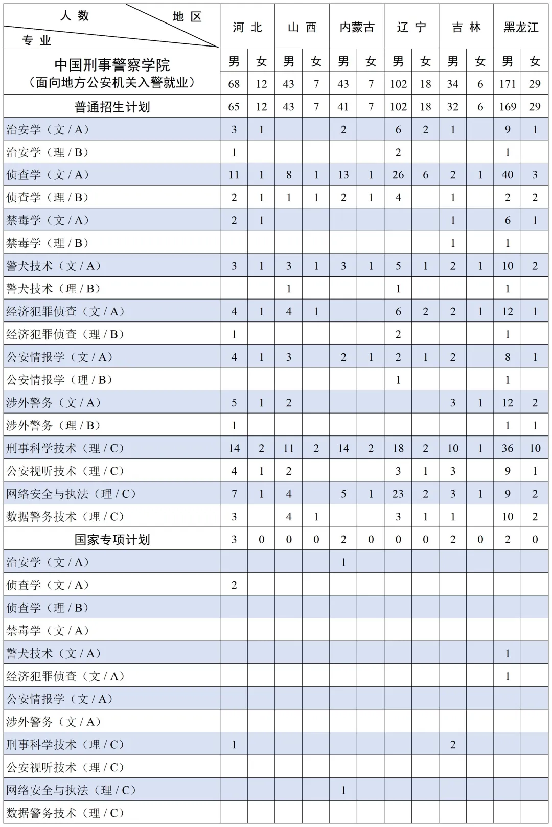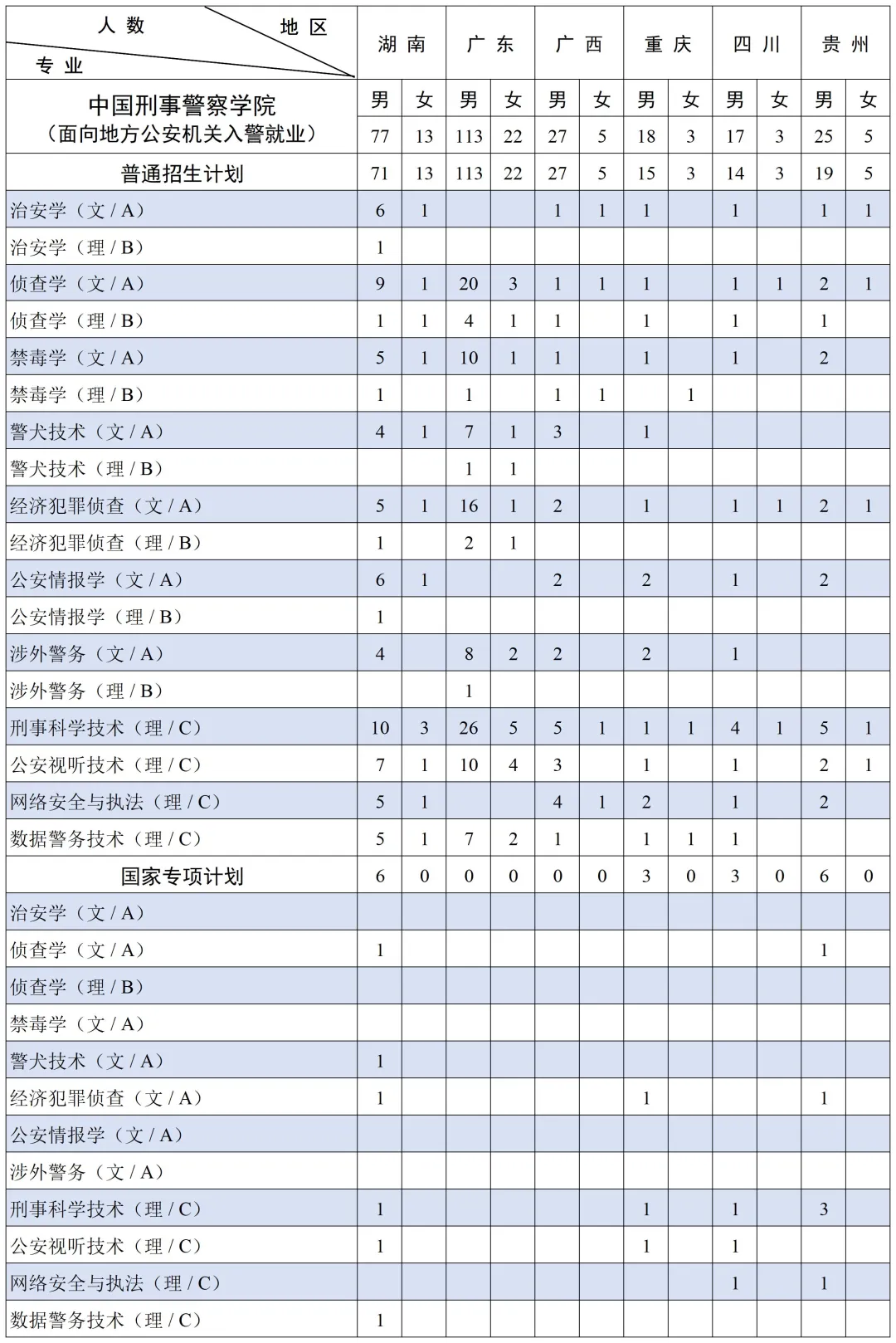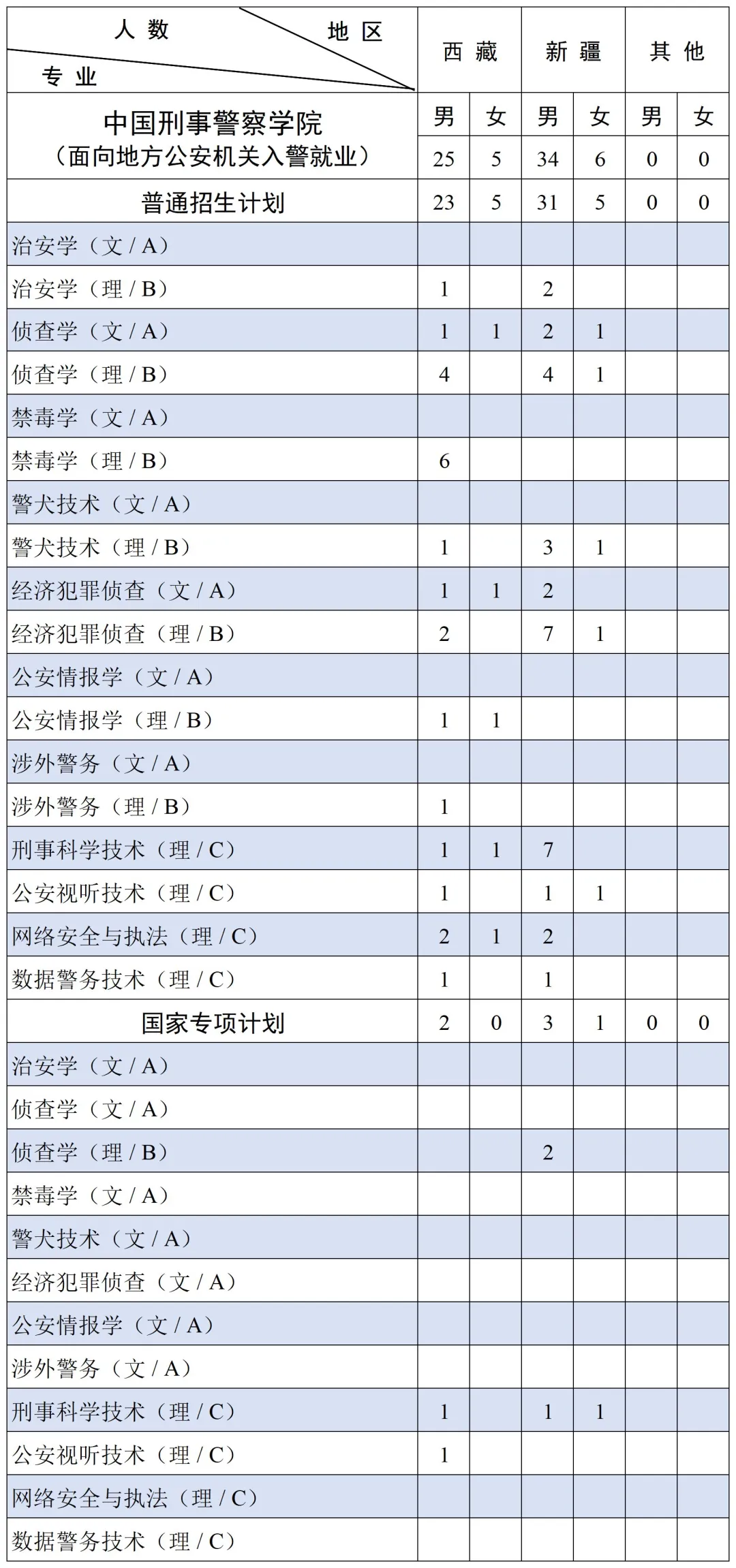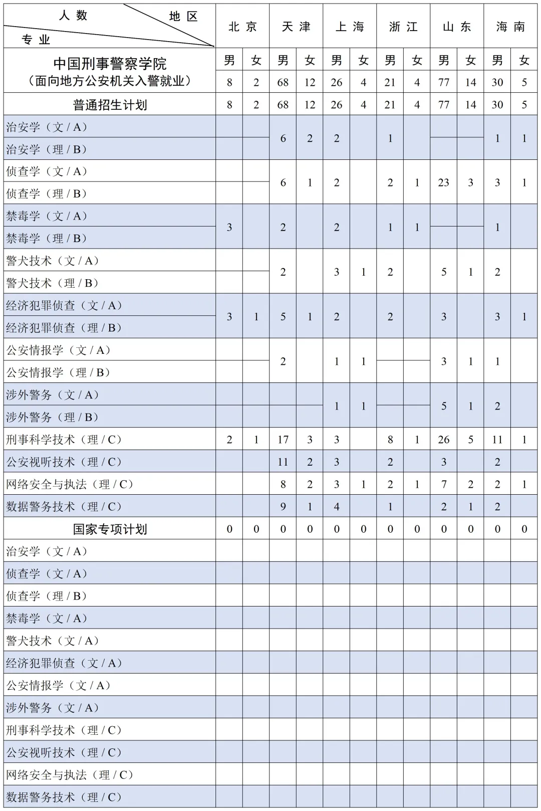 三、中国刑事警察学院2025年招生计划