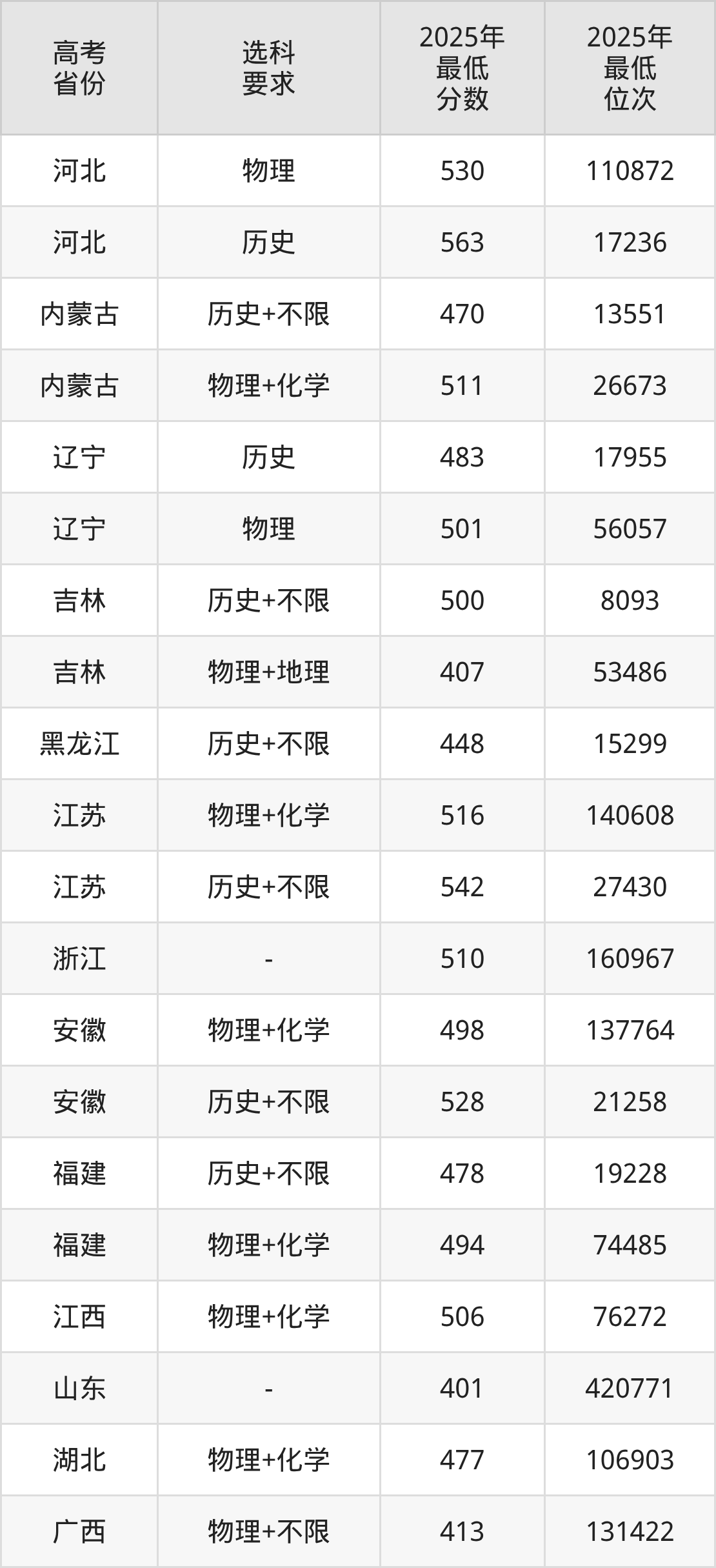 在2025年山东高考招生时,211收分最低的是东北农业大学,最低分是519分、位次是142100位。再看德州学院,2025年在山东的最低录取分数线是401分,最低位次是420771位。