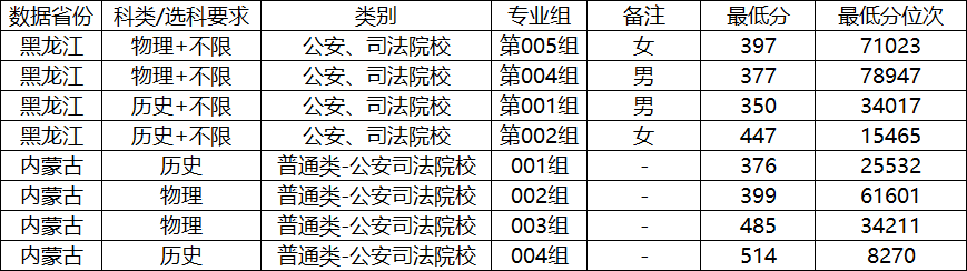 黑龙江省内提前批(司法行政警察类专业):