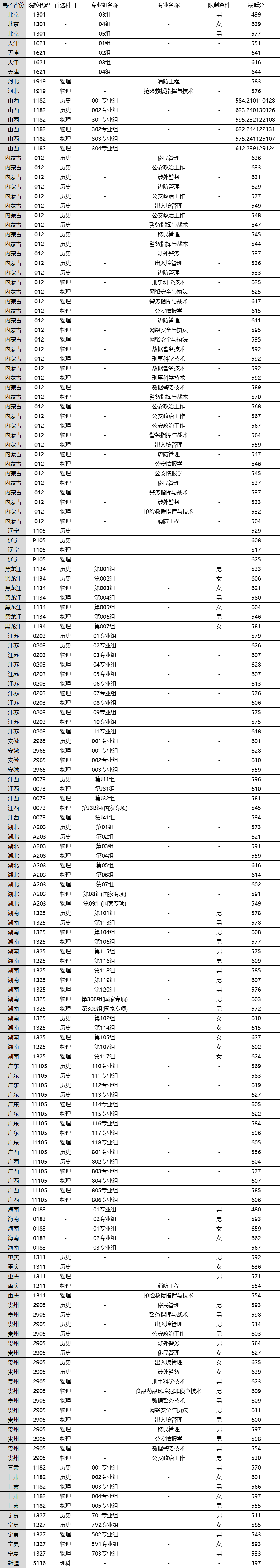 中国人民警察大学2025年在全国各省的录取分数线一览表具体如下: