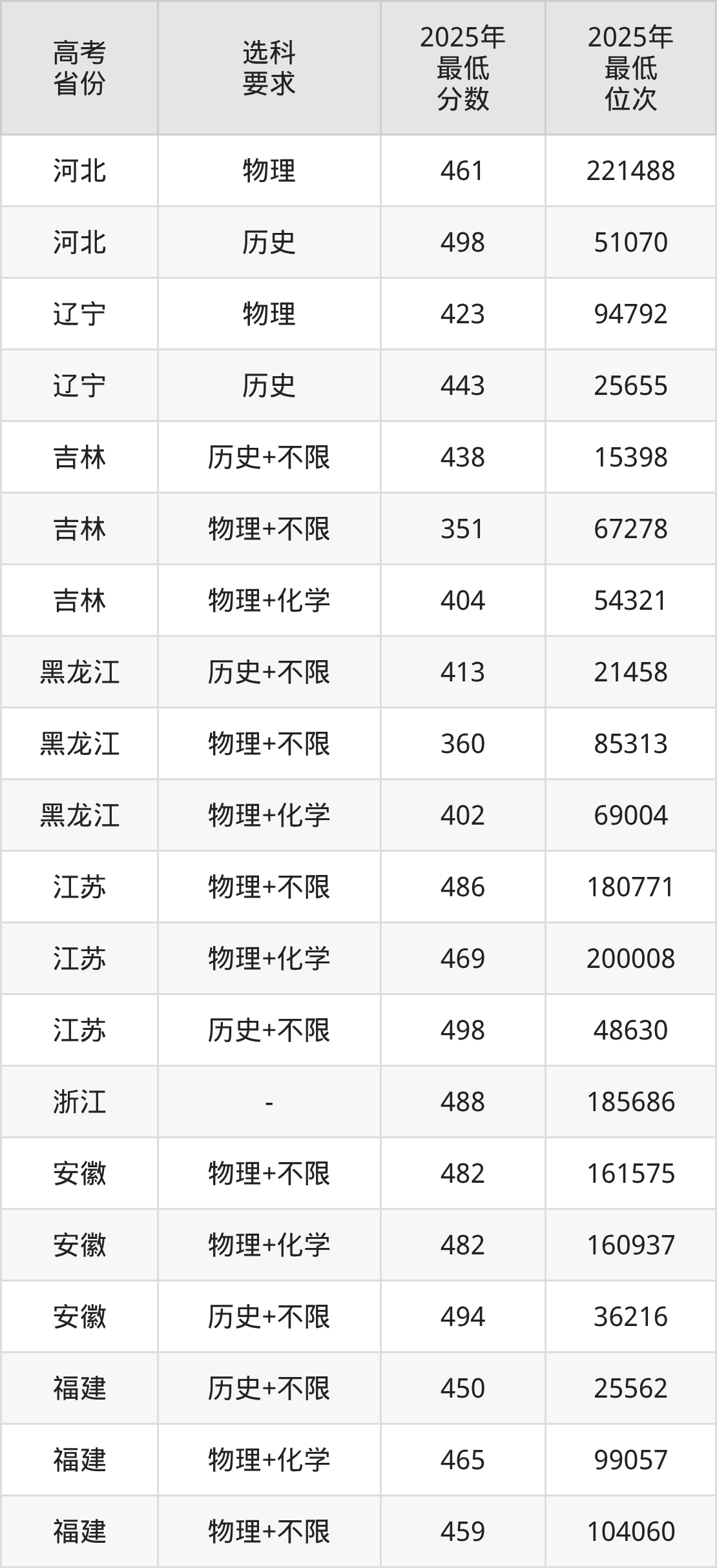 在2025年江苏高考物理类招生时,公办本科收分最低的是江苏建筑职业技术学院02组,最低分是220分、位次是66935位。再看三江学院,2025年在江苏物理类的最低录取分数线是469分,最低位次是200008位。