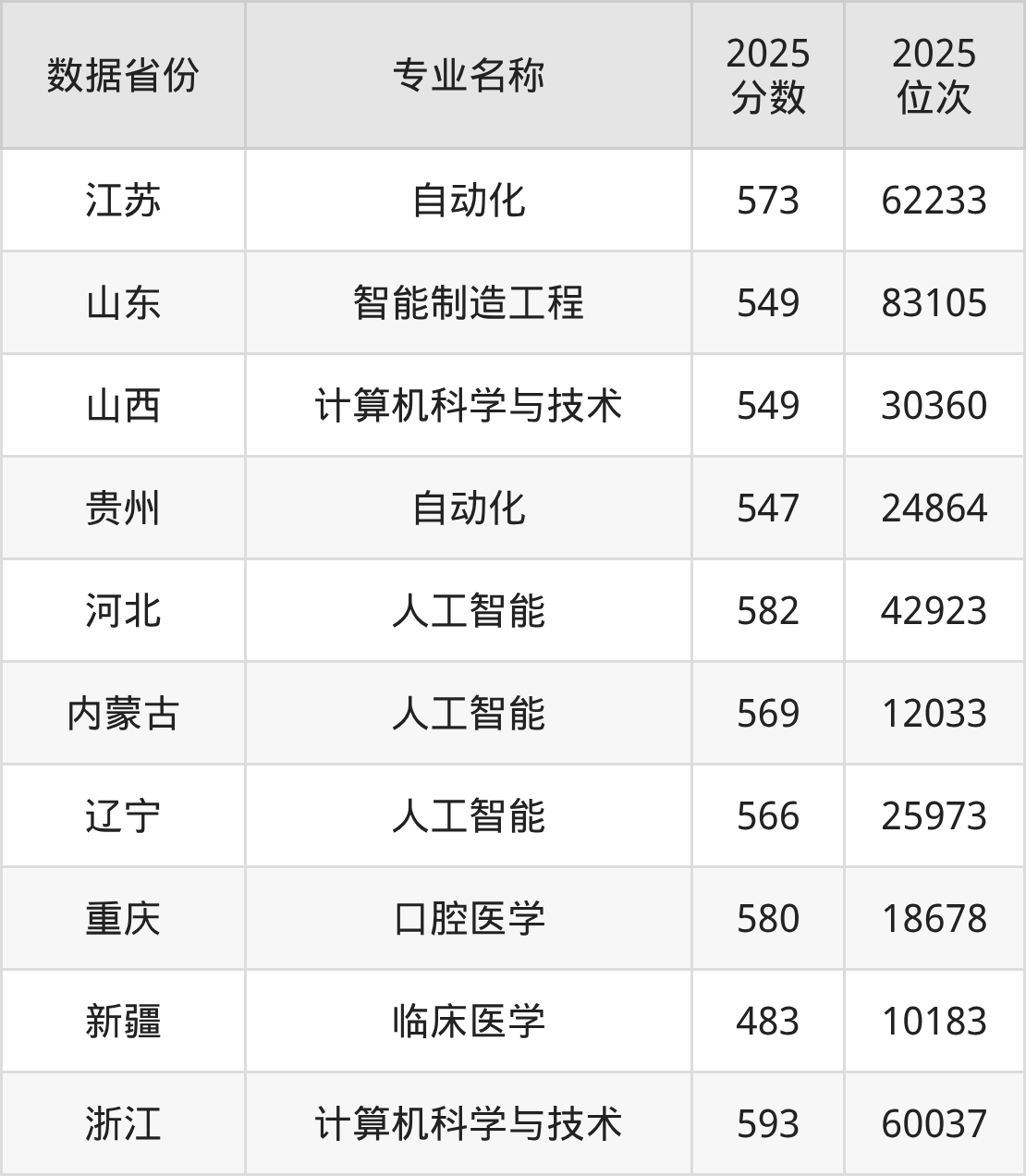 物理类热门专业包括自动化、智能制造工程、计算机科学与技术、人工智能、口腔医学、临床医学,全国多省最低录取分均在480分以上,报考竞争力较强。江汉大学各省物理类热门专业录取分数线及位次如下: