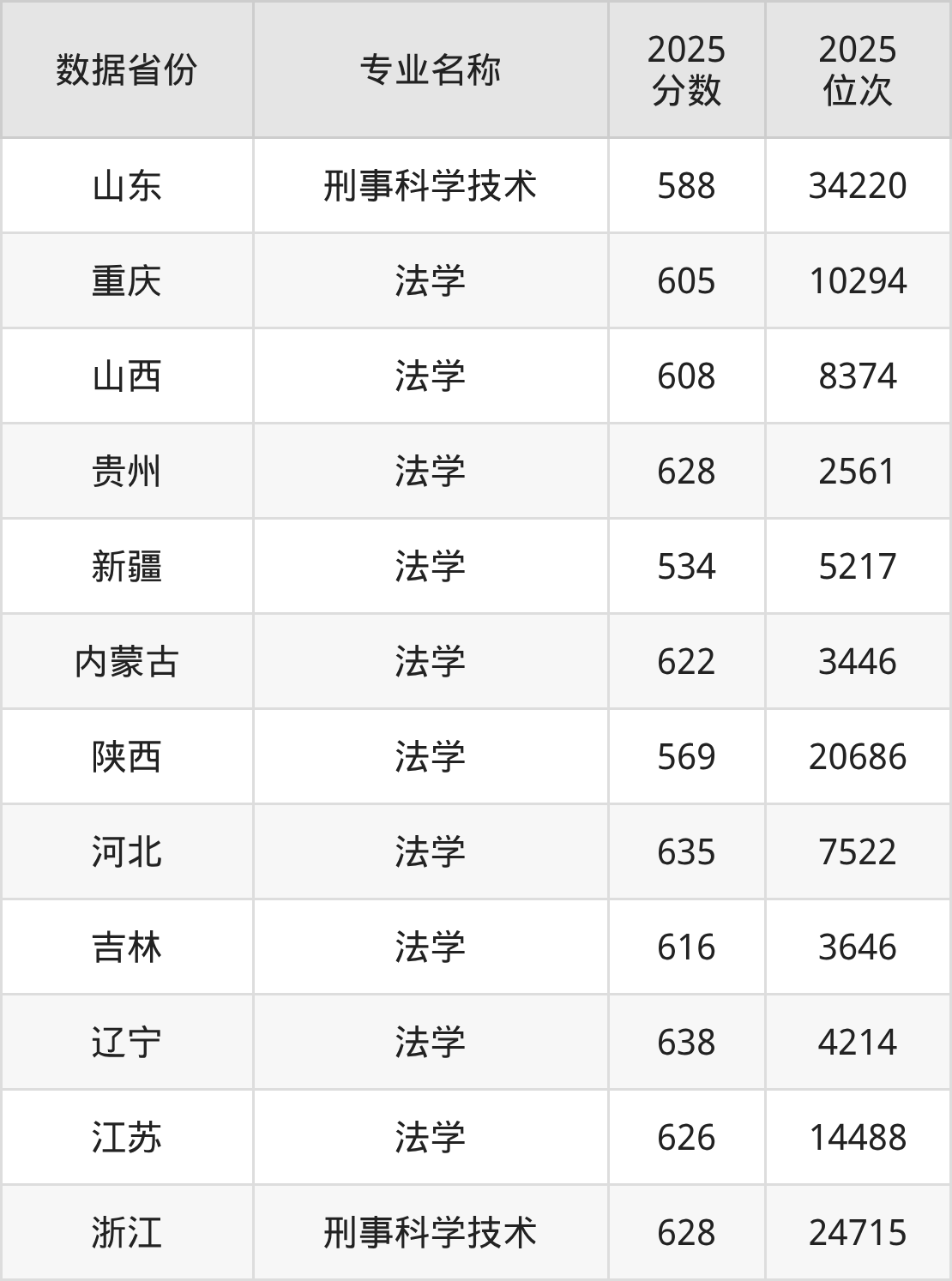 二、西南政法大学2025年热门专业录取分数线(2026年参考)