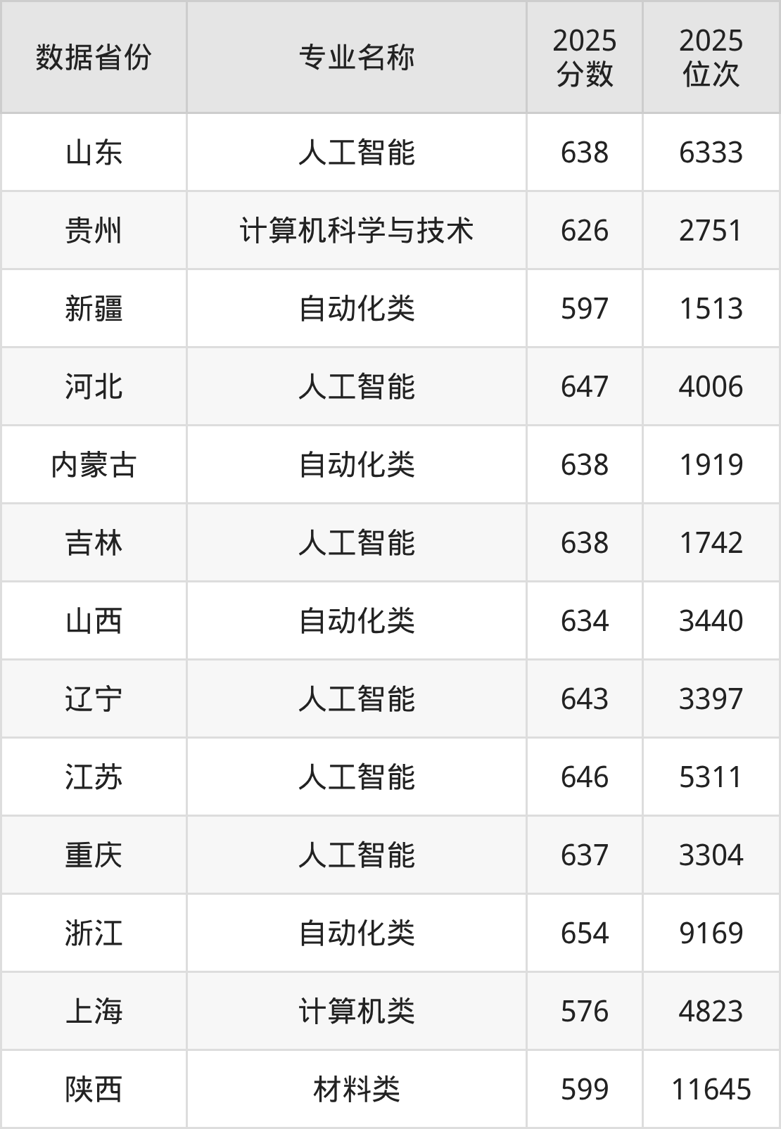 物理类热门专业包括人工智能、计算机科学与技术、自动化类、计算机类、材料类,全国多省最低录取分均在570分以上,报考竞争力较强。东北大学各省物理类热门专业录取分数线及位次如下: