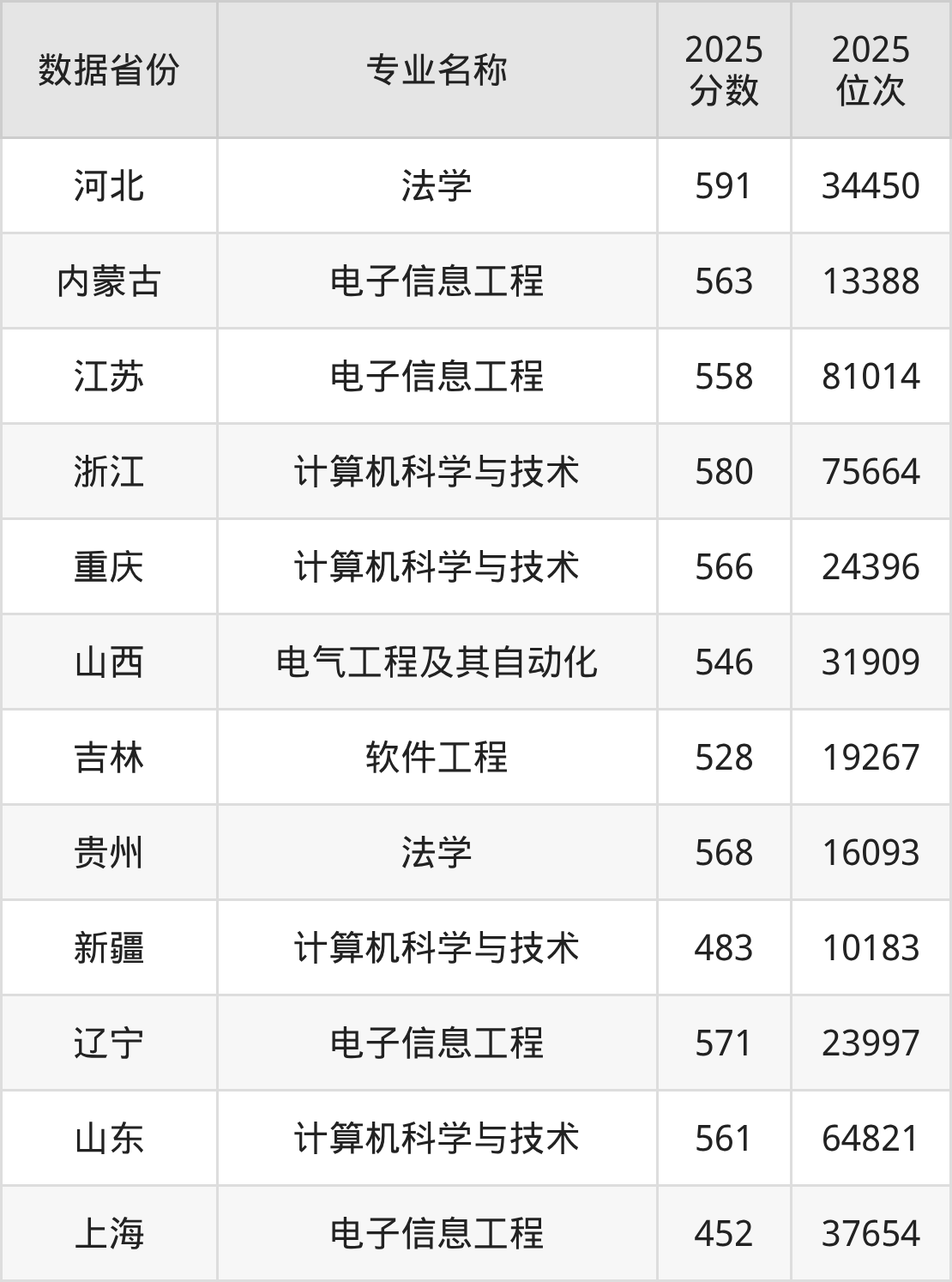 物理类热门专业包括法学、电子信息工程、计算机科学与技术、电气工程及其自动化、软件工程,全国多省最低录取分均在450分以上,报考竞争力较强。西南民族大学各省物理类热门专业录取分数线及位次如下: