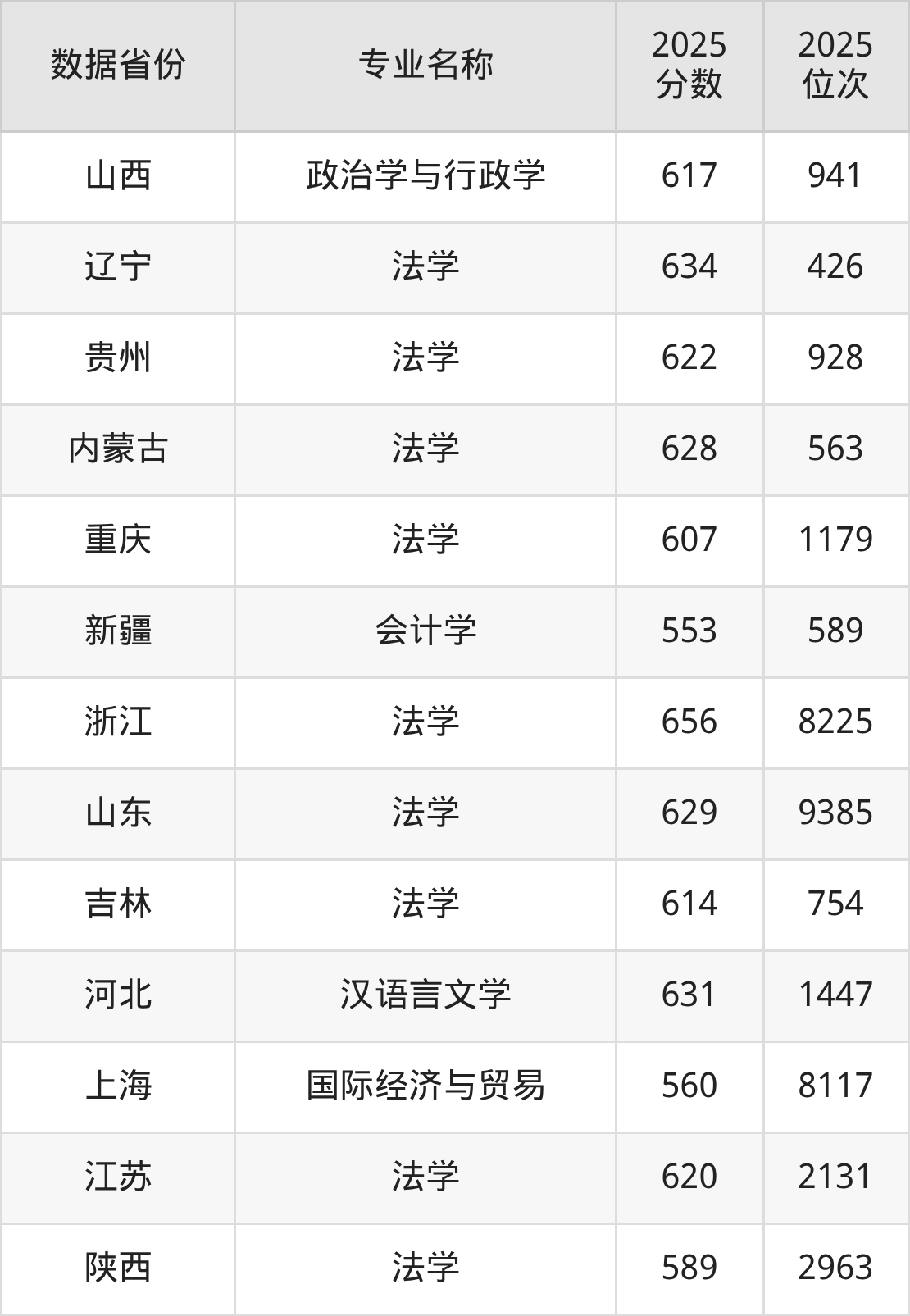 历史类热门专业包括政治学与行政学、法学、会计学、汉语言文学、国际经济与贸易,全国多省最低录取分均在550分以上,报考竞争力较强。中国海洋大学各省历史类热门专业录取分数线及位次如下: