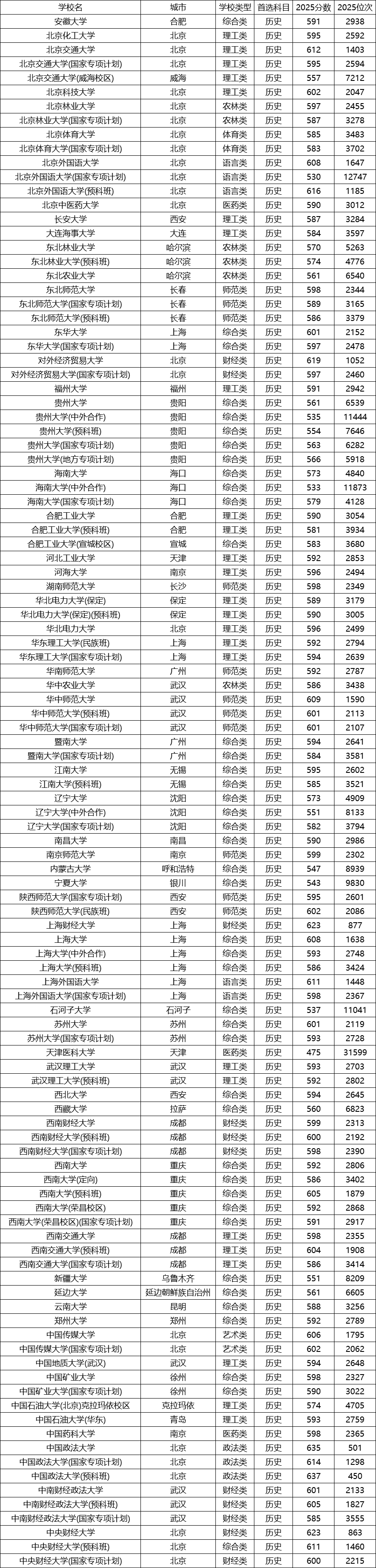 历史类考生上211的“机会区间”主要包括天津医科大学(475分)、石河子大学(537分)、内蒙古大学(547分)、辽宁大学(中外合作551分)、海南大学(中外合作533分) 等。值得注意的是,部分医药类、农林类或地理位置较偏的211高校,以及中外合作办学项目,录取分数相对亲民。