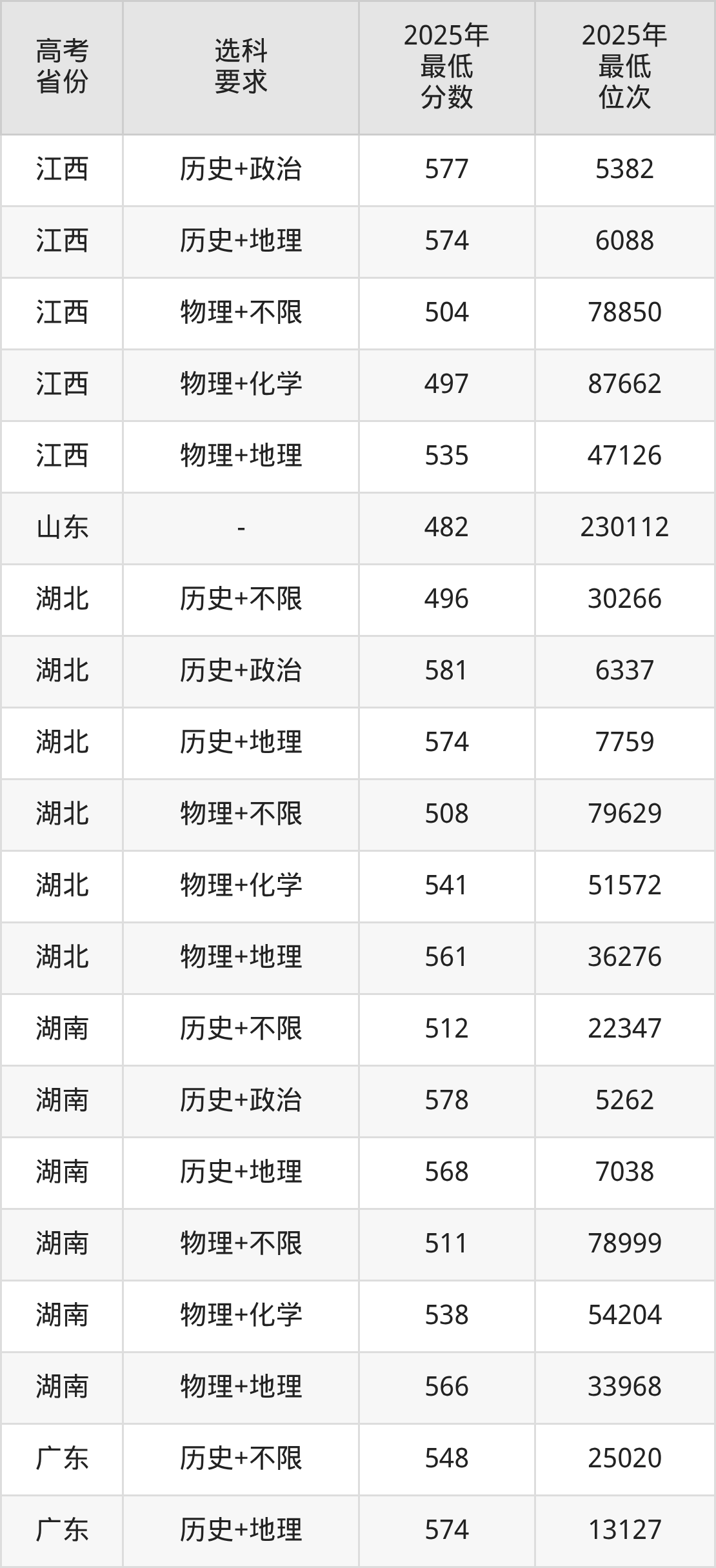 在2025年江西高考物理类招生时,211收分最低的是延边大学第503组,最低分是515分、位次是66039位。再看江西师范大学,2025年在江西物理类的最低录取分数线是497分,最低位次是87662位。
