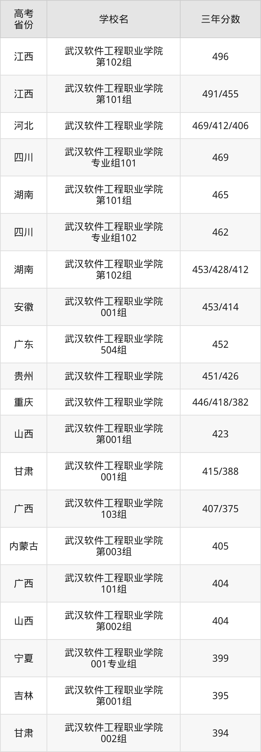 二、武汉软件工程职业学院近三年在湖北物理类的录取分数线