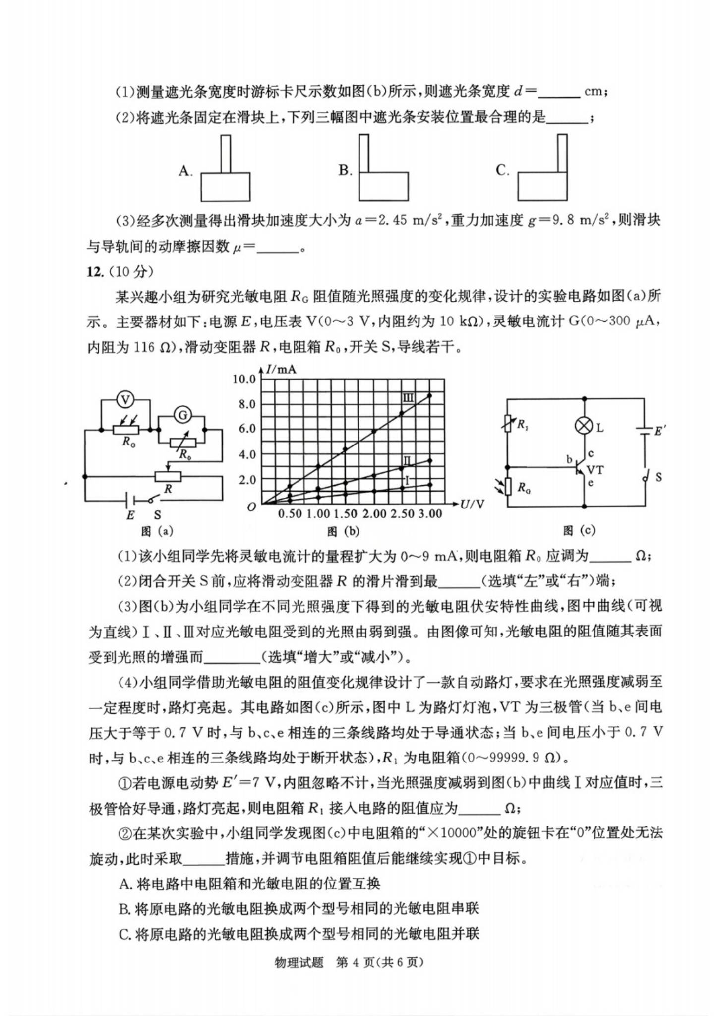 二、2026届成都二诊物理试卷及参考答案最新