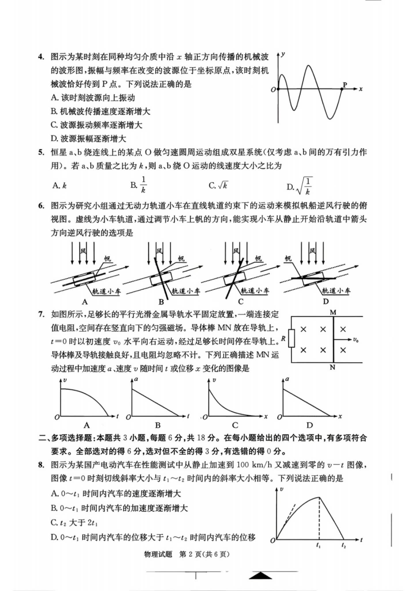 第7题以“新能源汽车电池能量密度”为背景,考查电学知识与数据分析能力;第14题结合“天宫课堂”实验,要求设计测量微重力加速度的方案。