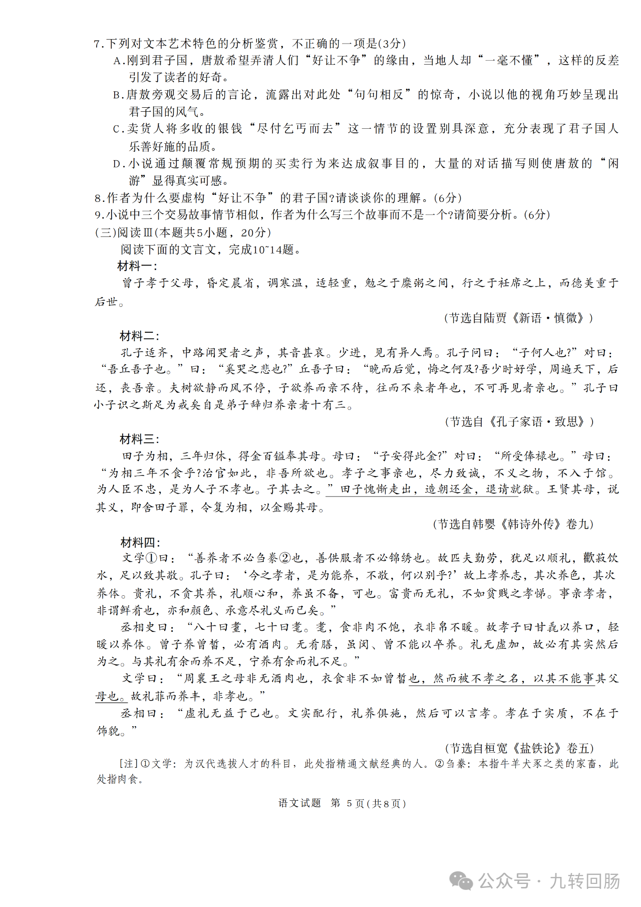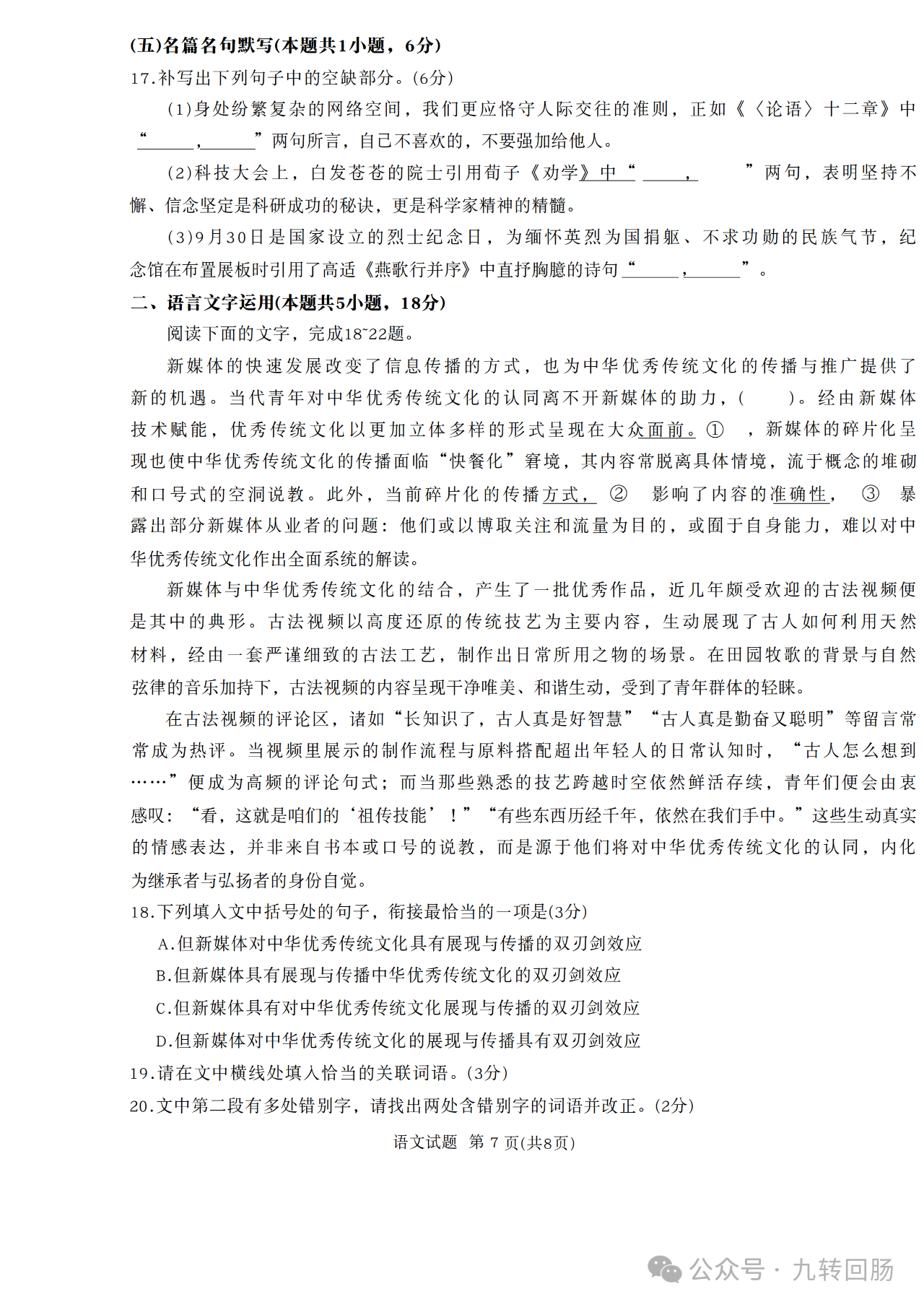 英语试题包括听力、阅读理解、完形填空、语法填空和写作,全面考查语言理解与实际运用能力。