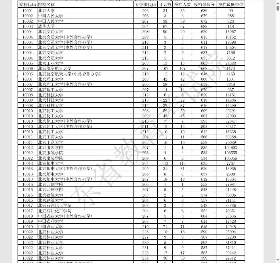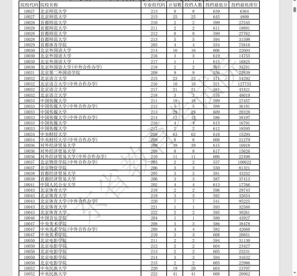 其他热门院校如浙江大学、南京大学、武汉大学等,投档分数集中在640-660分之间,位次在2000-6000名左右。
