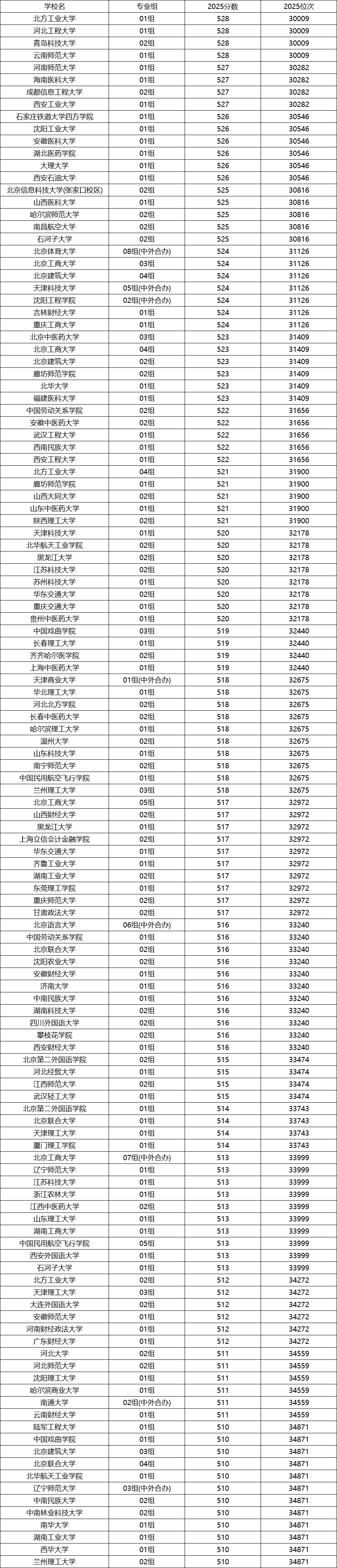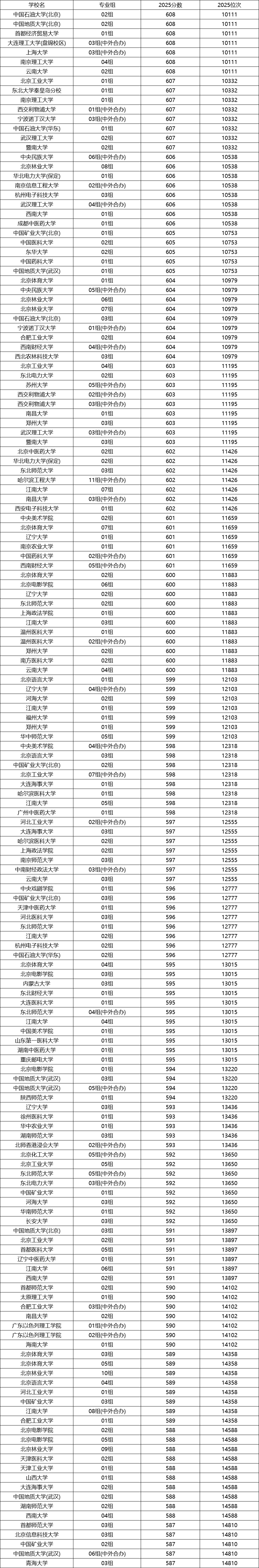 2025北京高考分数及位次对应大学名单表
