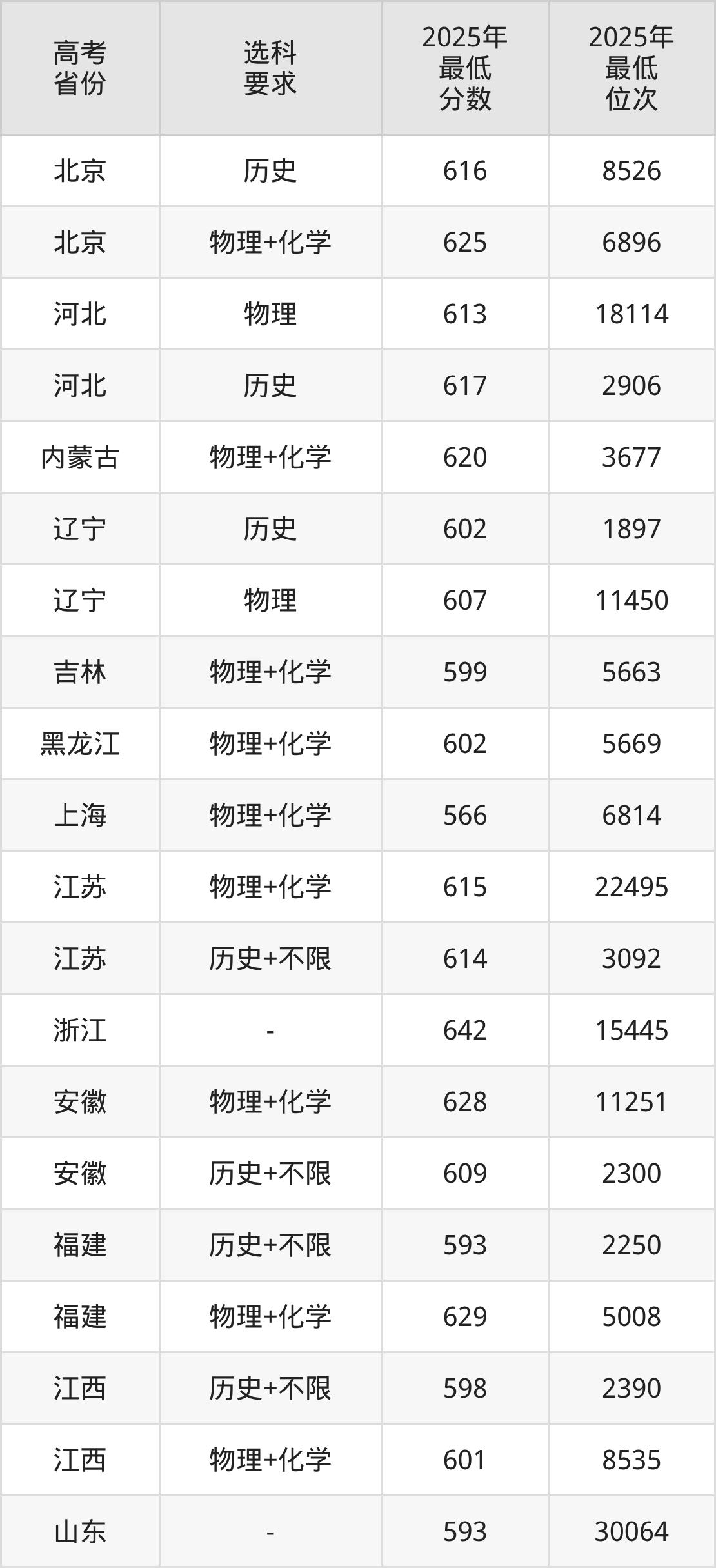 (3)电子信息类(拔尖创新班),最低分是649,录取位次是4364,学费是6380元一年。