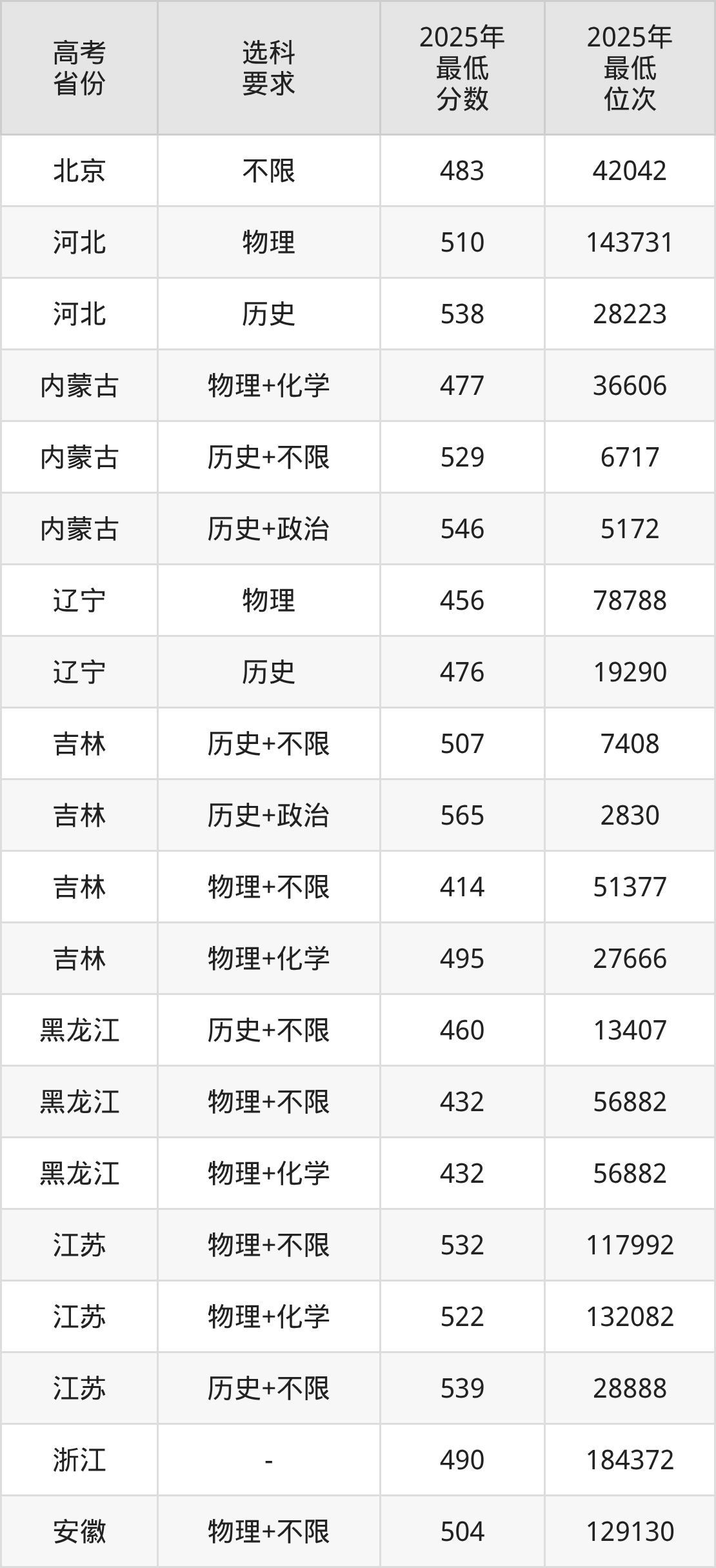 在2025年辽宁高考物理类招生时,211收分最低的是西藏大学,最低分是460分、位次是76739位。再看渤海大学,2025年在辽宁物理类的最低录取分数线是456分,最低位次是78788位。