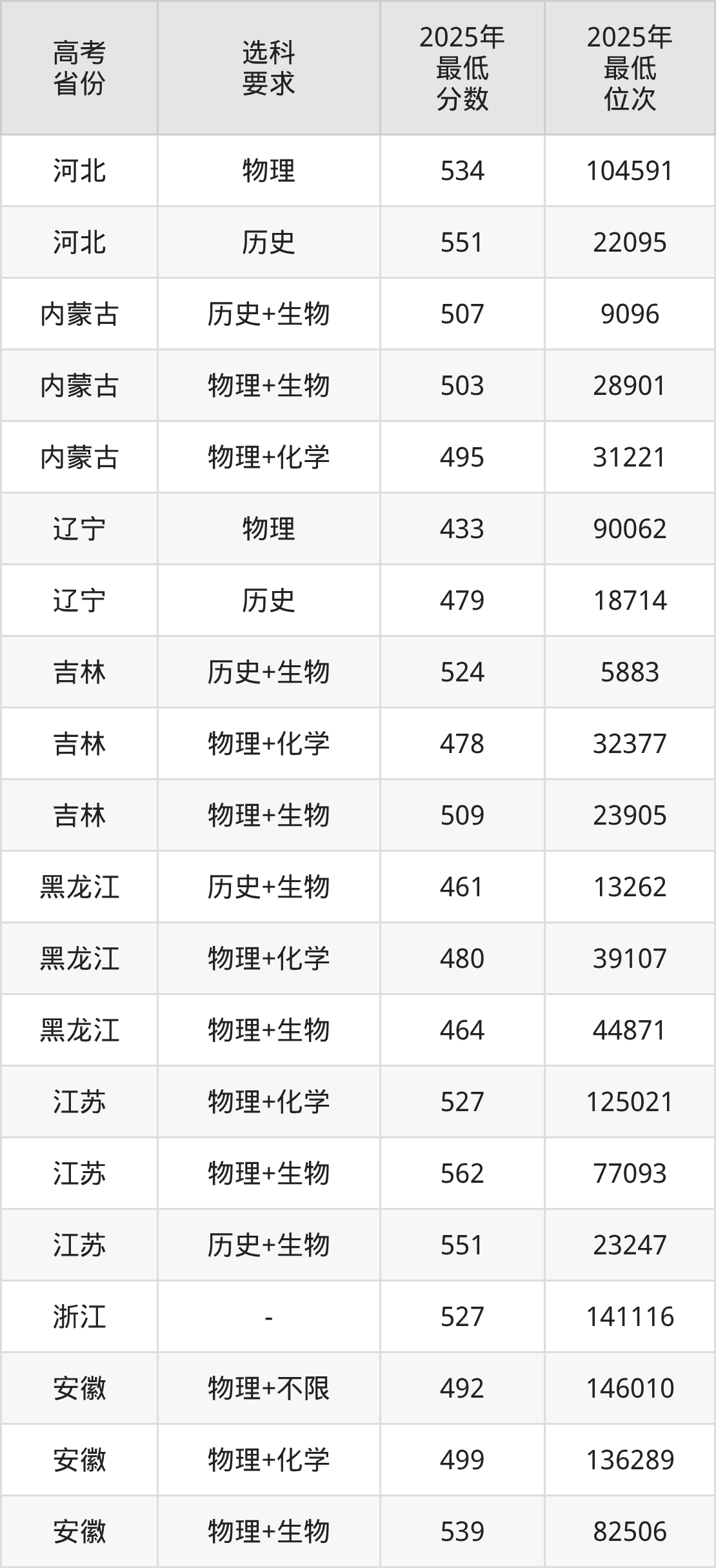 下方是沈阳医学院2025年在辽宁省录取分数线比较高的3个专业,2026年高考生可以参考!